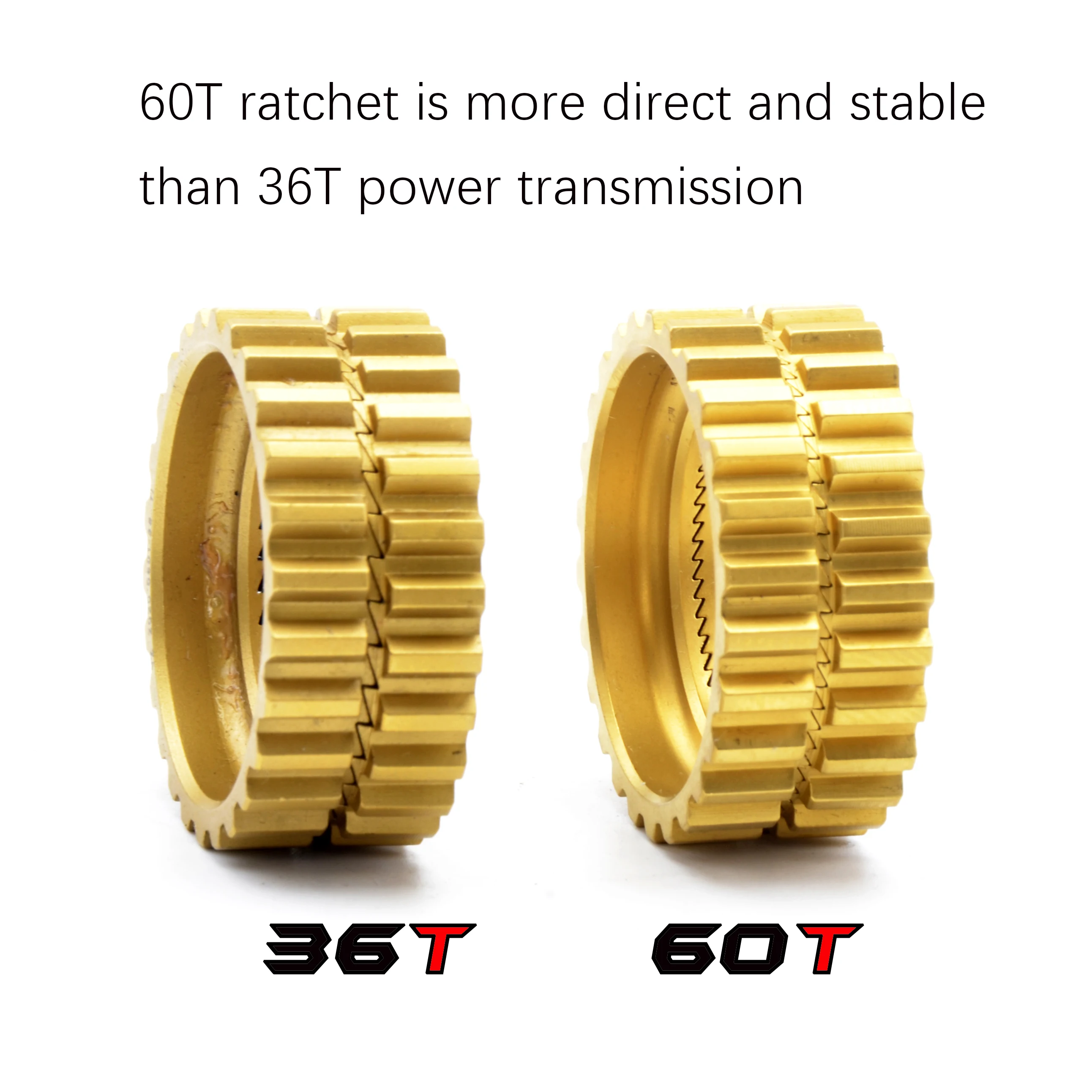 36t и 60t шестерни варианты доступны. По сравнению с 36t, 60t имеет более плотные зубы, которые меньше, угол интервал каждого зуба, И меньше нейтральный пространства для формирования, из-за чего силы поколение колеса Набор прямых и эффективную работу устройств.