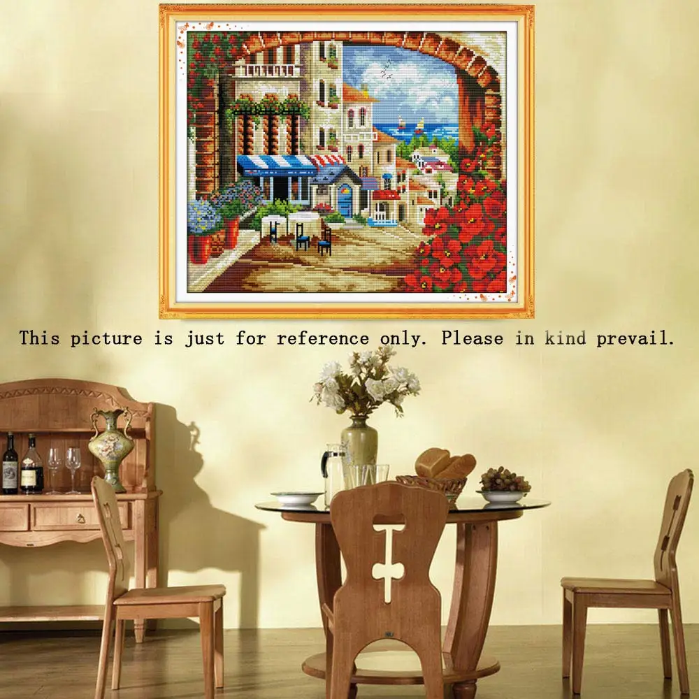 Этот Набор для вышивания очень красив с средиземноморским пейзажем и его цветами. С китайским элементом, вы можете испытать и наслаждаться традиционной культурой Китая в процессе вышивки крестом.