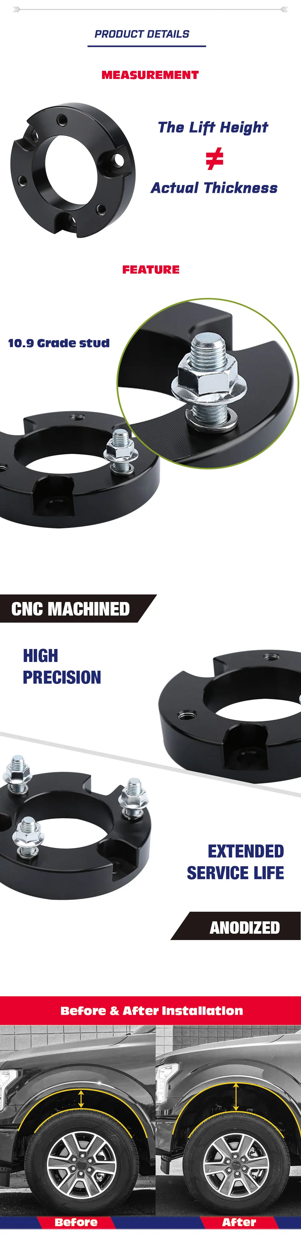 Высота подъема: около 3 "(50 мм-77 мм)/ 2"(37 мм-50 мм) Толщина: 35 мм/25 мм Применимость: Nissan Navara Болты: болты премиум класса 10,9 Обработка поверхности: анодированная Материал: Кованая авиационная Заготовка алюминий Т6 обработанный Количество: 2 x передняя распорка Цвет: черный Гарантия: 1 год