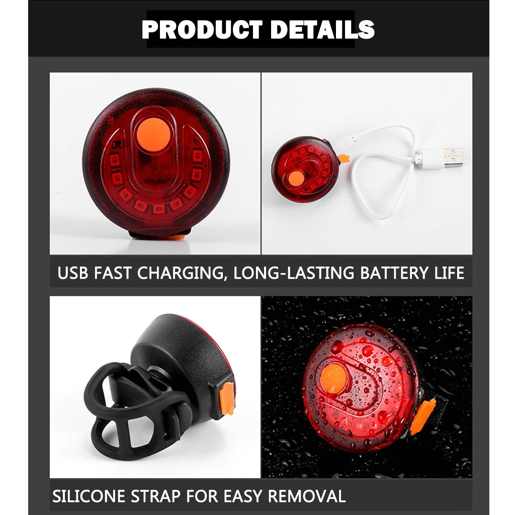 Водонепроницаемый USB Перезаряжаемый мигающий ночной задний фонарь Предупреждение Велоспорт