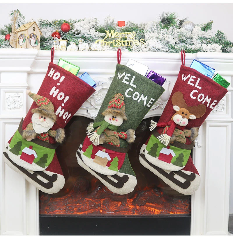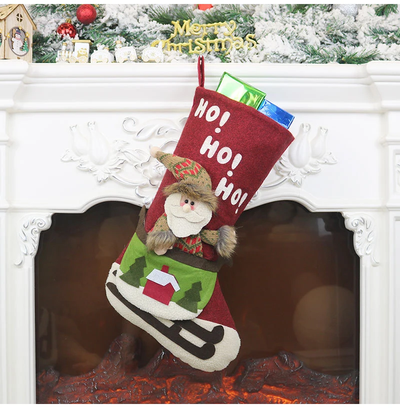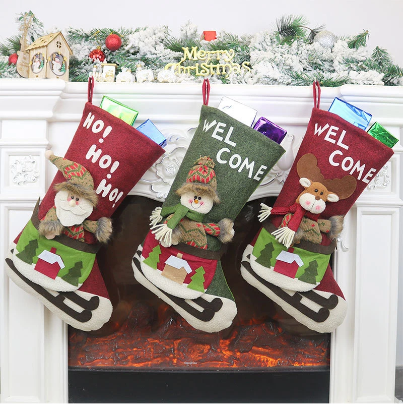 Christmas Decorations Santa Claus Pendant Christmas Socks Gift Bags Christmas Tree Ornaments Charm Candy Bags