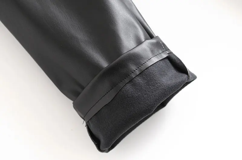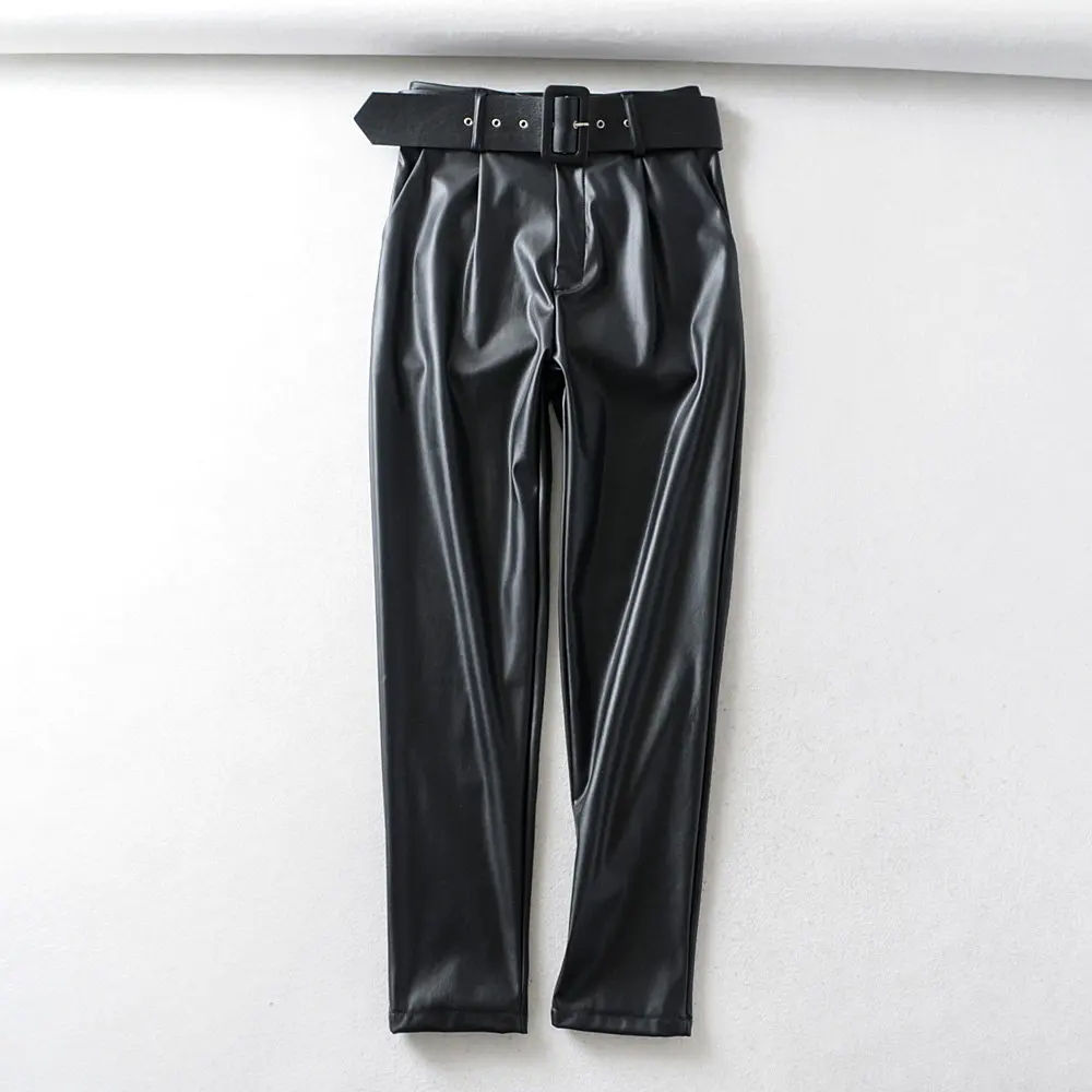 Женские шикарные теплые брюки из искусственной кожи с бантиком и поясом, с карманами, на молнии, черные Повседневные базовые брюки, pantalones mujer