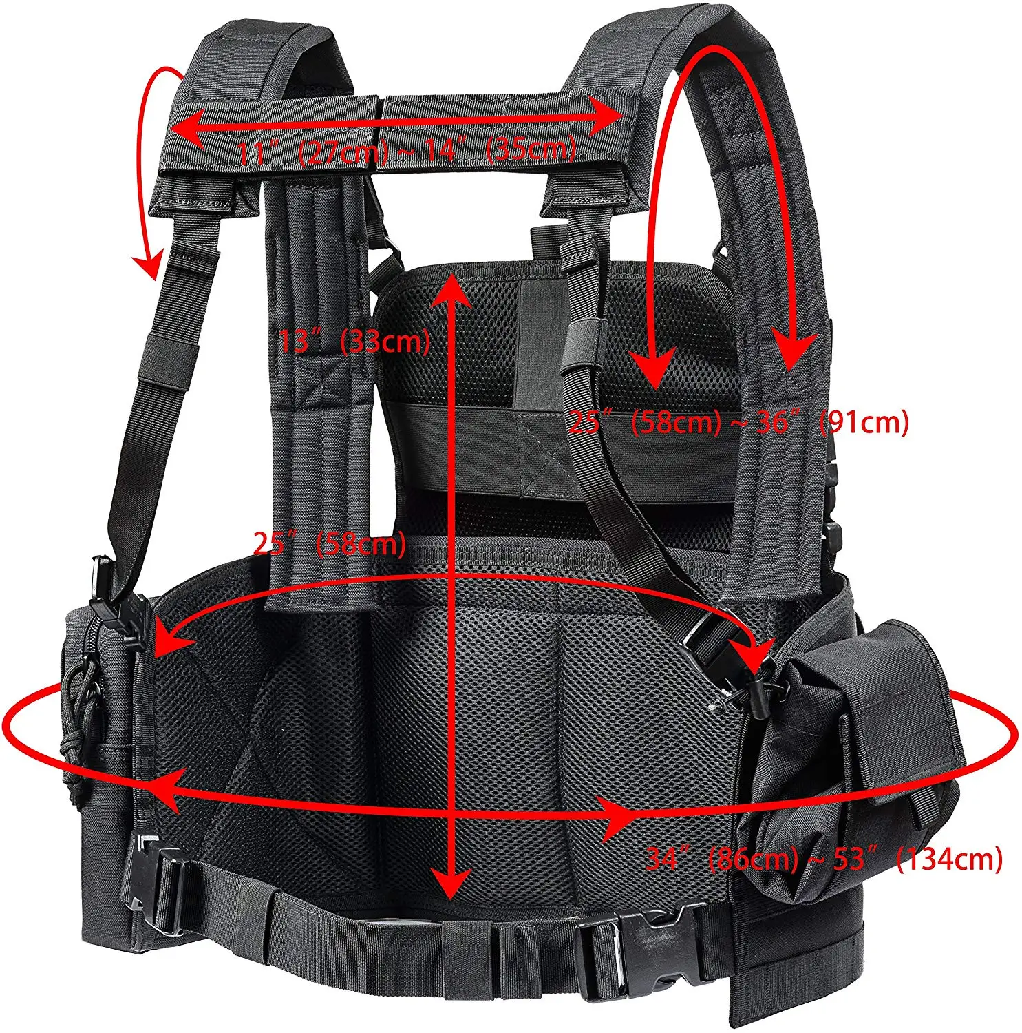 Он дает вам 3 вертикальные и 4 горизонтальные полосы MOLLE, чтобы обеспечить крепление дополнительных мешков.
