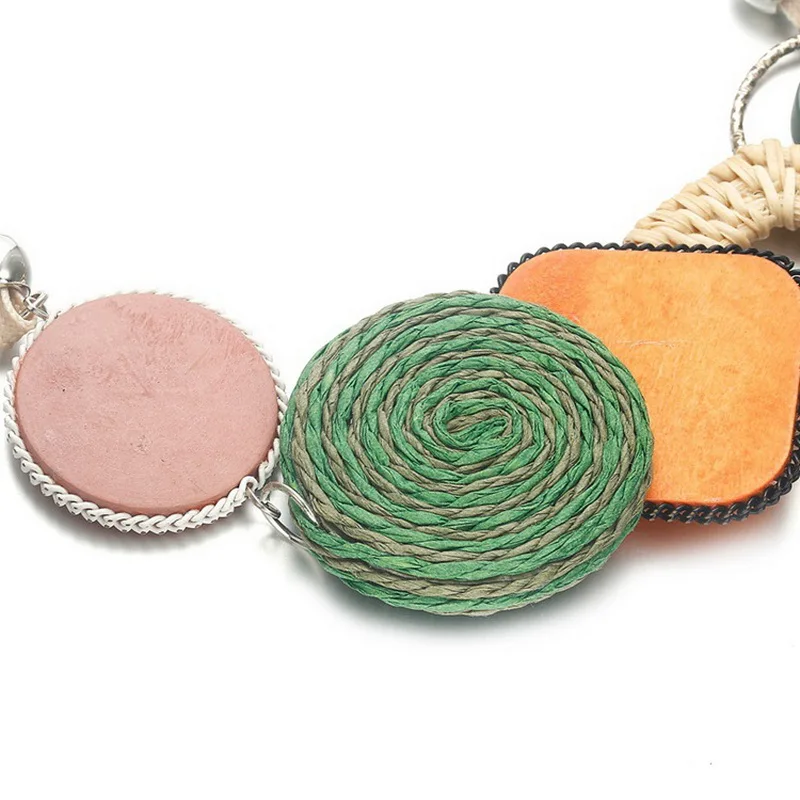 Дешевые Подвески Ожерелья растение ручной работы волокна ожерелье для женщин бамбуковое плетение заявление Подарочные ожерелья украшения для девушки