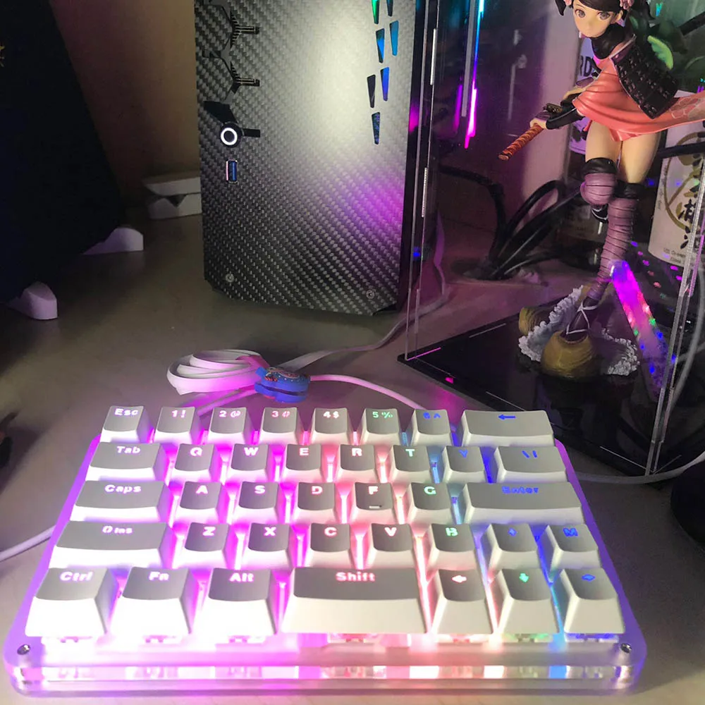 Наименование товара 38 Ключи мини-клавиатура Количество клавиш 38 Ключи Siwtches Красный/синий переключатель cherry mx Материал Защитное стекло Программируемый Поддержка 24 комплектов комбинаторный ключ Программное обеспечение С Светильник с регулируемой 9 уровней Поддержка ОС Оконные рамы MacOS Размер 19x11x4 см Вес 310 г