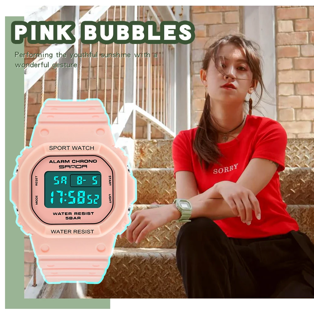 Sanda электронные цифровые часы Вишневый Розовый женские спортивные часы прямой маркетинг светящиеся оптом студенческие модные наручные часы