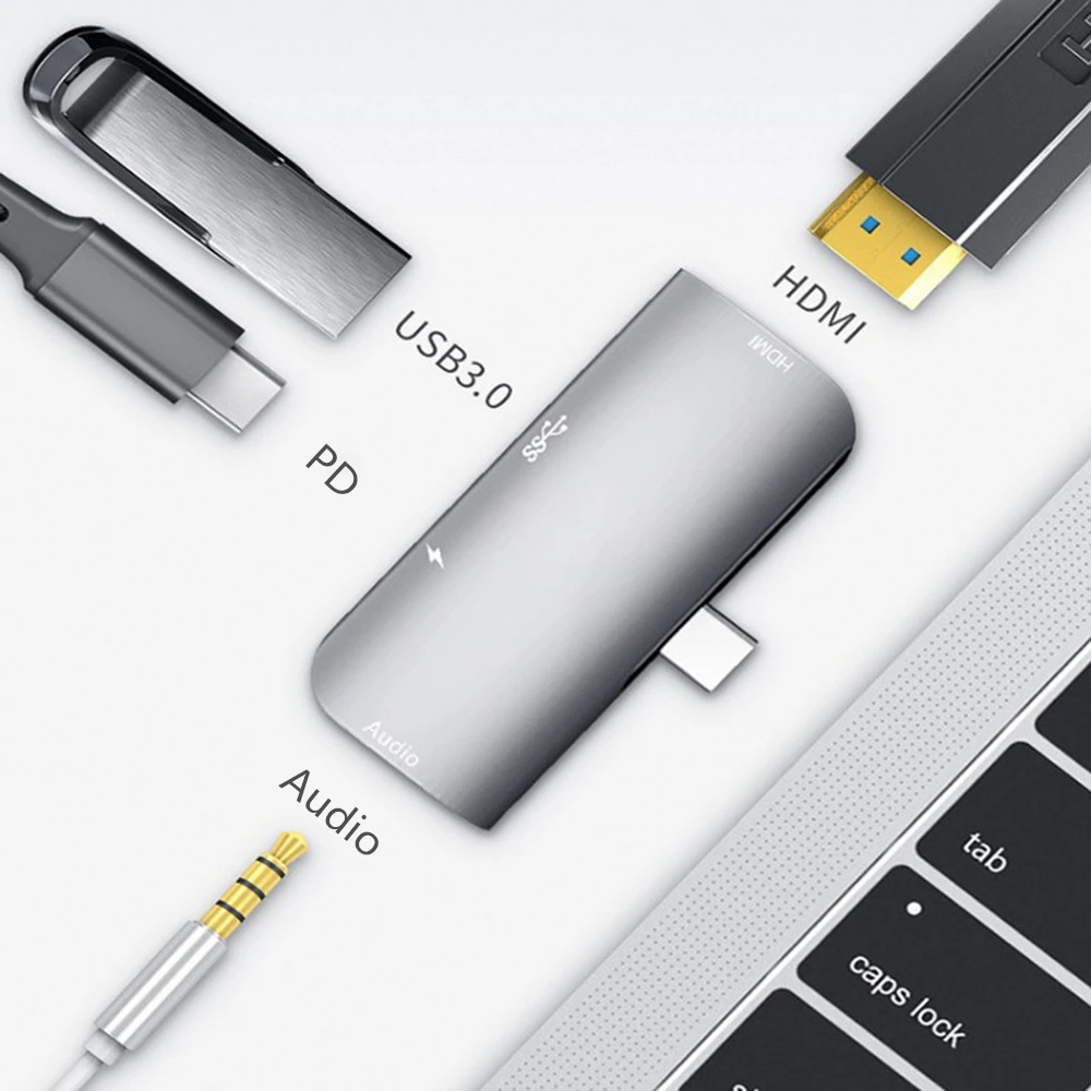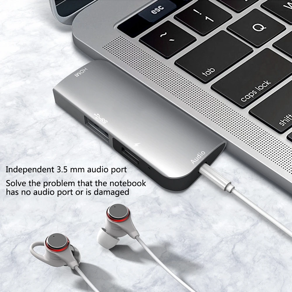 Tebe 4-в-1 USB Type-C концентратор USB C к 4K HDMI USB 3,0 PD Быстрая зарядка 3,5 мм аудио док-станция адаптер для планшета MacBook Pro