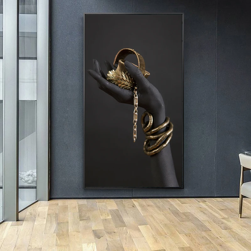 Черная рука с золотыми ювелирными изделиями, холст, настенные картины, постеры и принты, Африканское искусство, современные фотографии, украшение для дома на стену