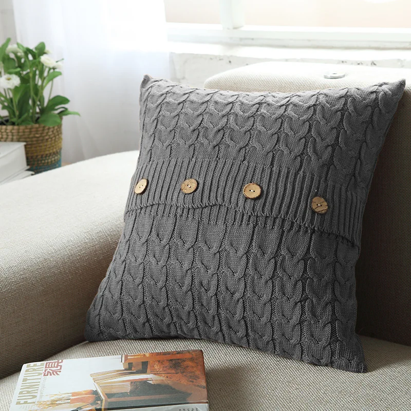 Вязаный чехол для подушки Серый однотонный чехол для подушки Nordico Vitage вязаный 45*45 см мягкий для дивана-кровати декоративная кофейная комната