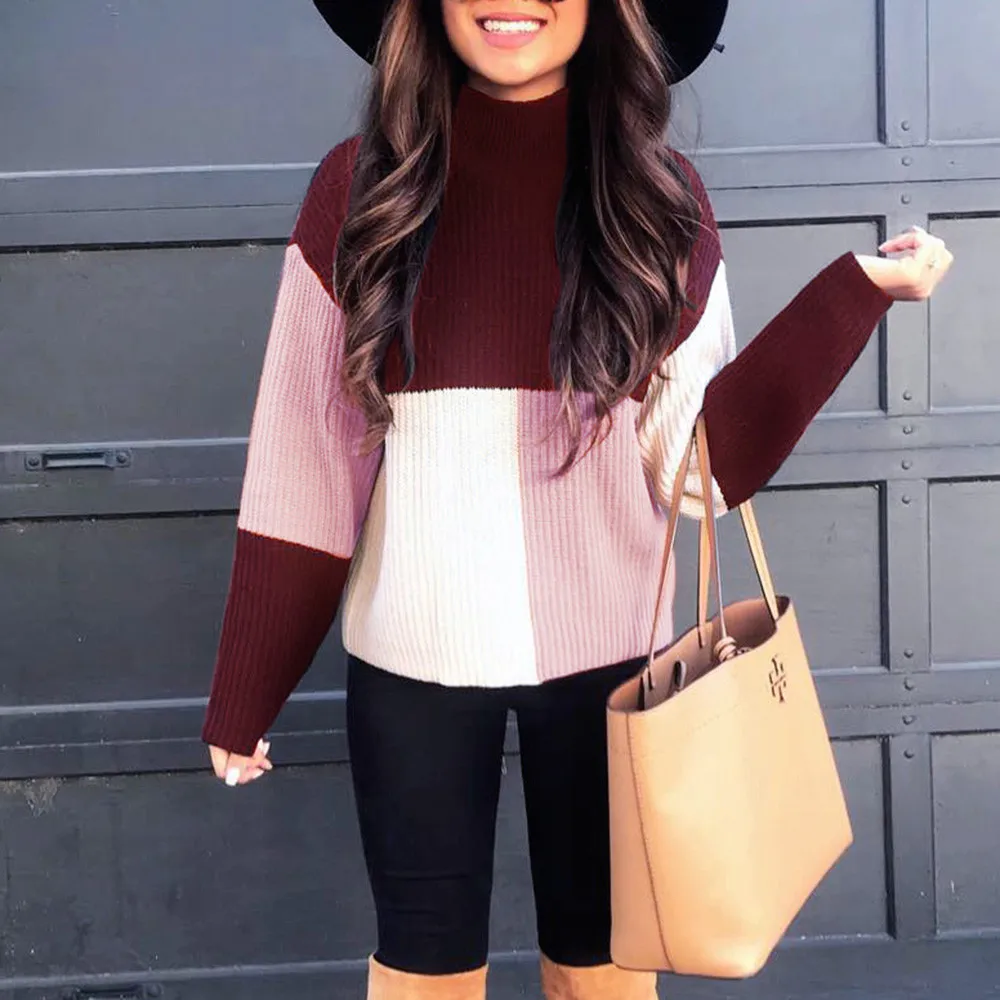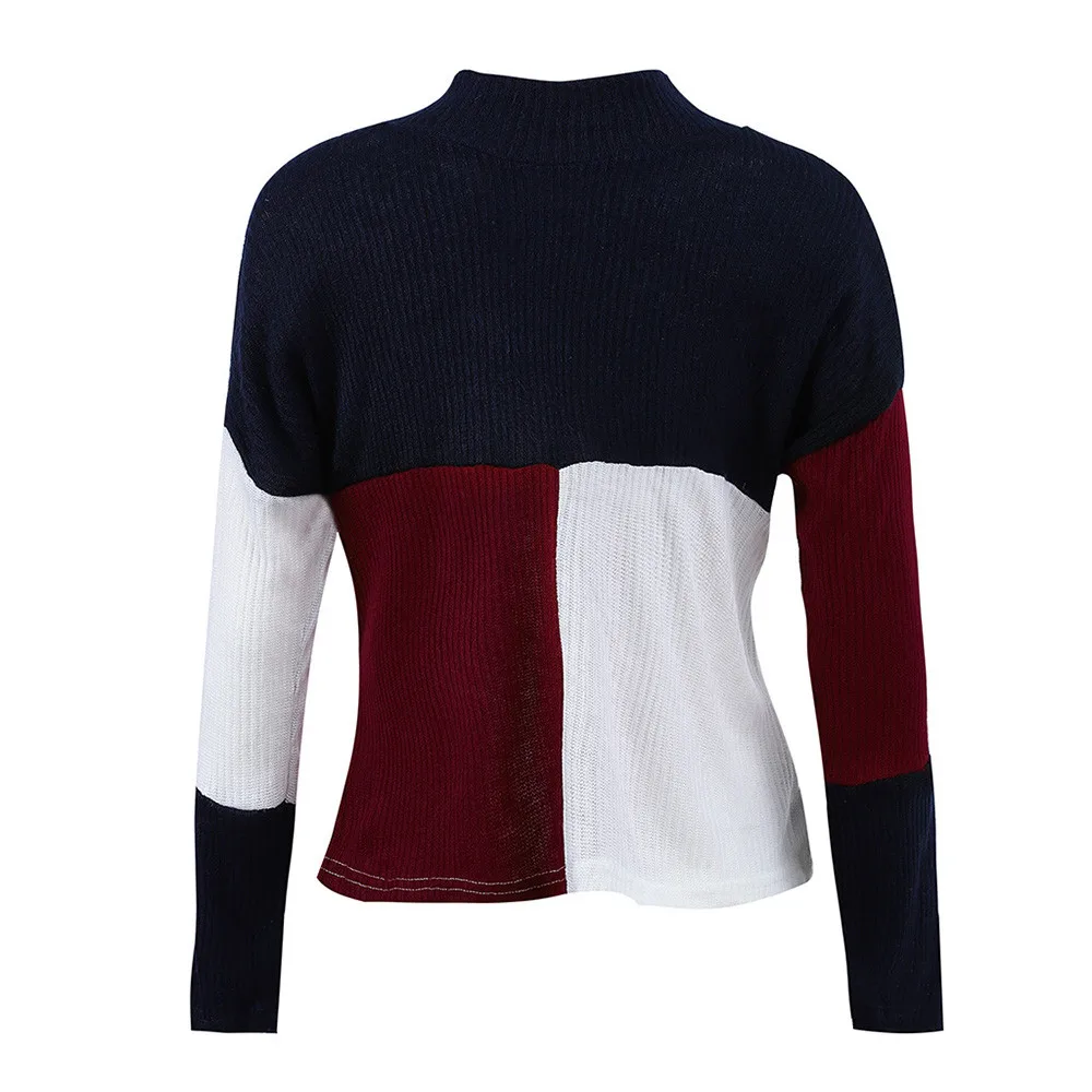 Женский трикотажный пуловер с длинным рукавом и воротником-стойкой