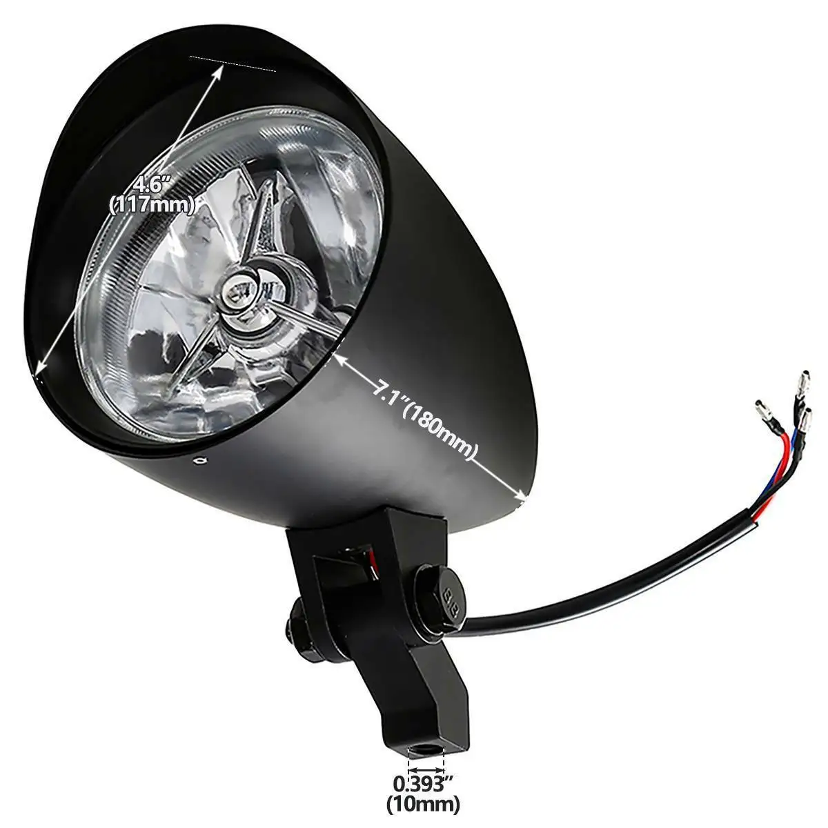 -Aftermarket 100% новый, отличное состояние -Поставляется с галогенной лампой H4 12 в 55/60 Вт, лампа H4 может использоваться в условиях высоких/низких температур, что позволяет использовать светильник в ночное время. -Черный металлический корпус с прозрачными стеклянными линзами -3 провода для подключения Цвет: черный -Размер резьбы: 10 мм Размер: показано на фотографиях