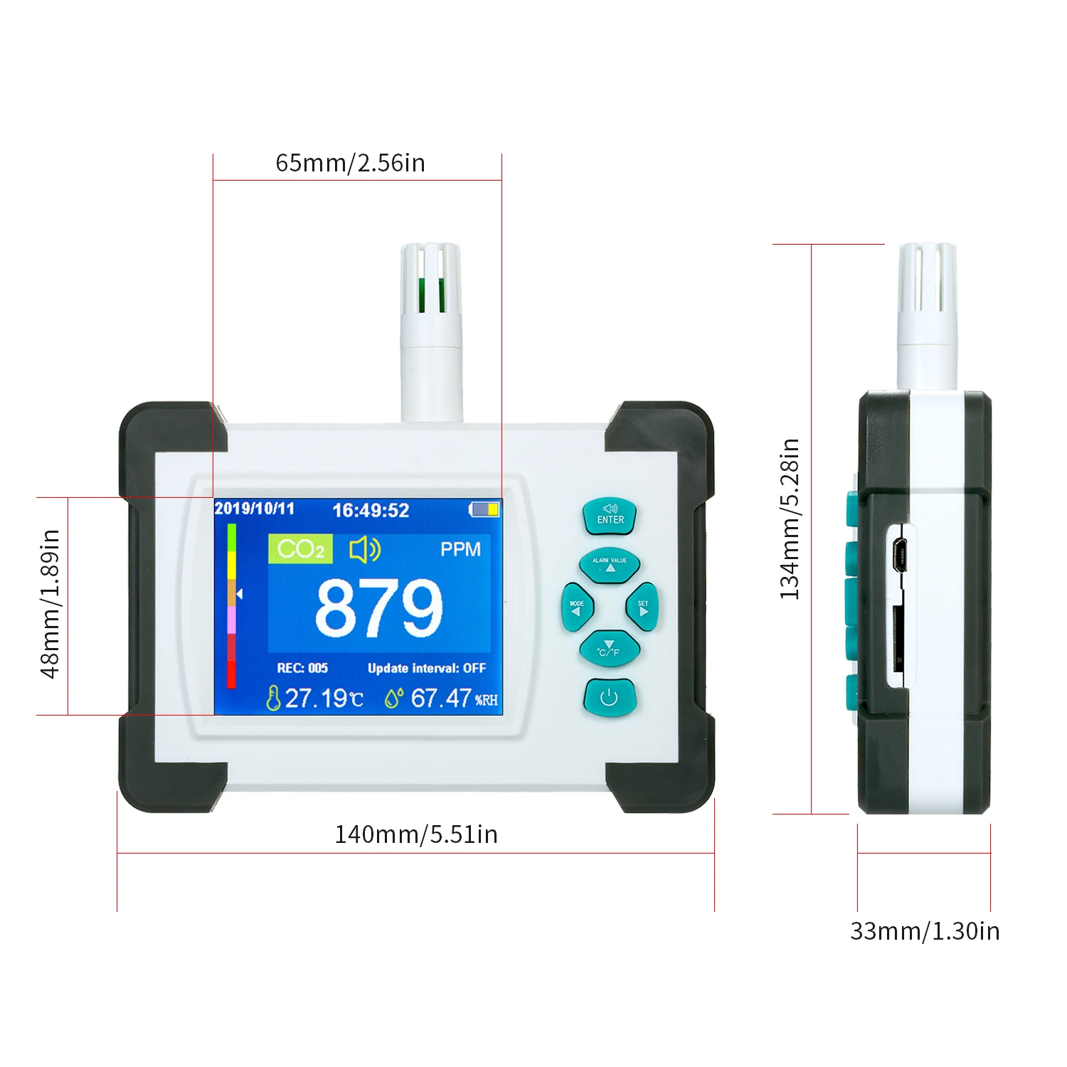 3,2-дюймовый TFT полноцветный светодиодный дисплей, дата, время, CO2, влажности, температура (℃/℉ Переключаемый), а также другие данные четко.