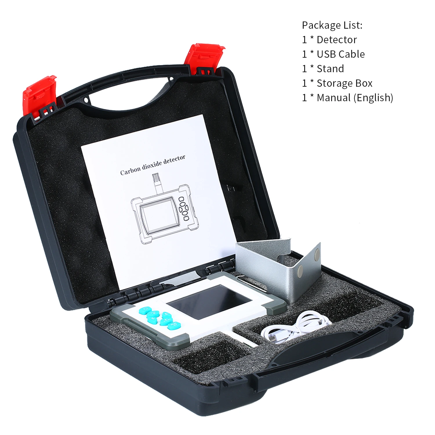 Детектор углекислого газа обнаруживает углекислый газ окружающей среды на месте через принцип поглощения источников инфракрасного светильник. Продукт имеет характеристики, температура, влажность, тенденция: 999 групп записи данных о погоде, 3,2 "TFT полноцветный светодиодный дисплей, задание сигналов тревоги, запись данных о временной интервал измерения, В режиме реального времени, даты и времени, заряжаемая литиевая батарея или отдельный внешний USB зарядки, срок использования датчика ≥ 8000 часов и Плетеного шнура, высокое качество USB, Макс./мин дисплей, и лучшая точка-это тестовые данные, которые могут быть экспортированы в файл PDF.