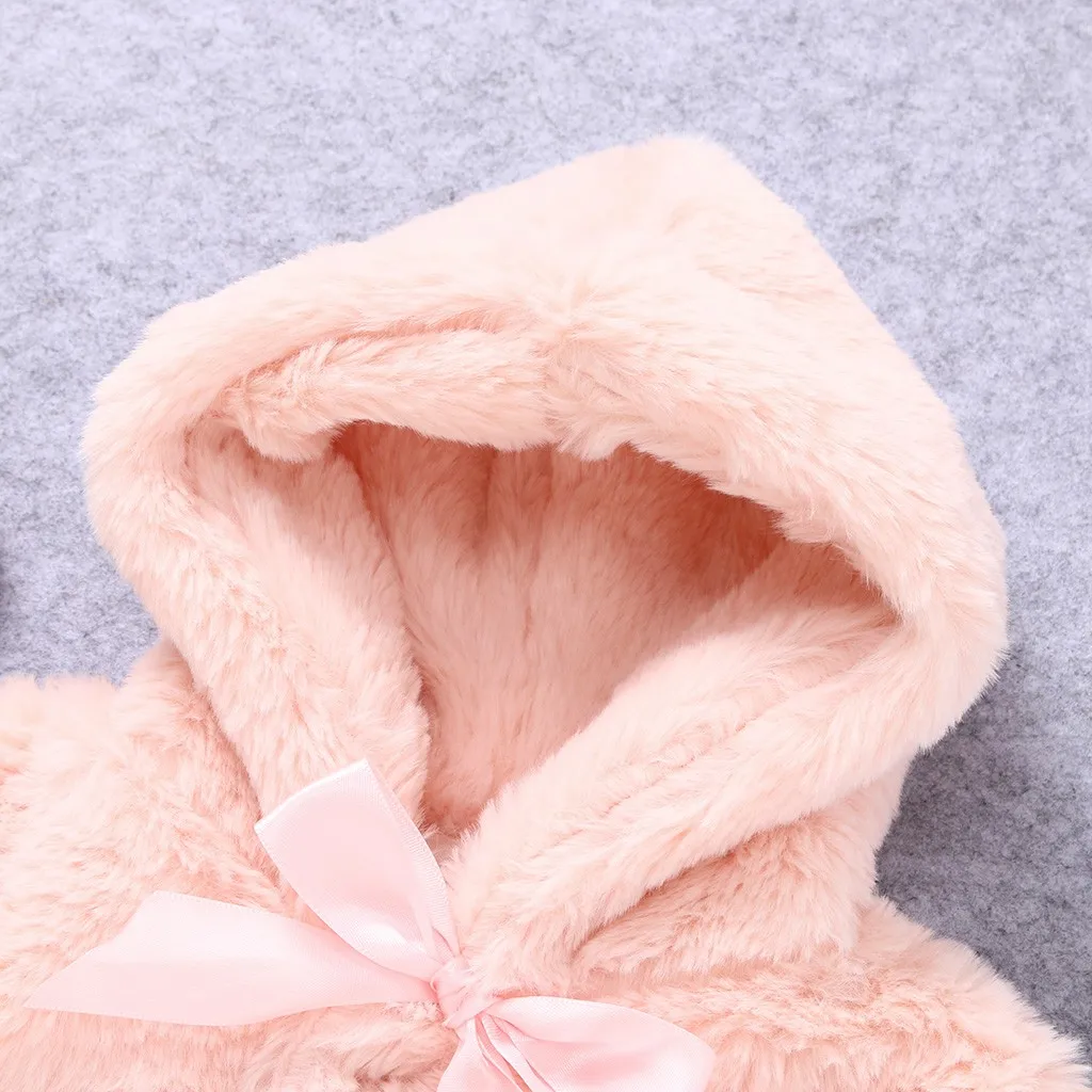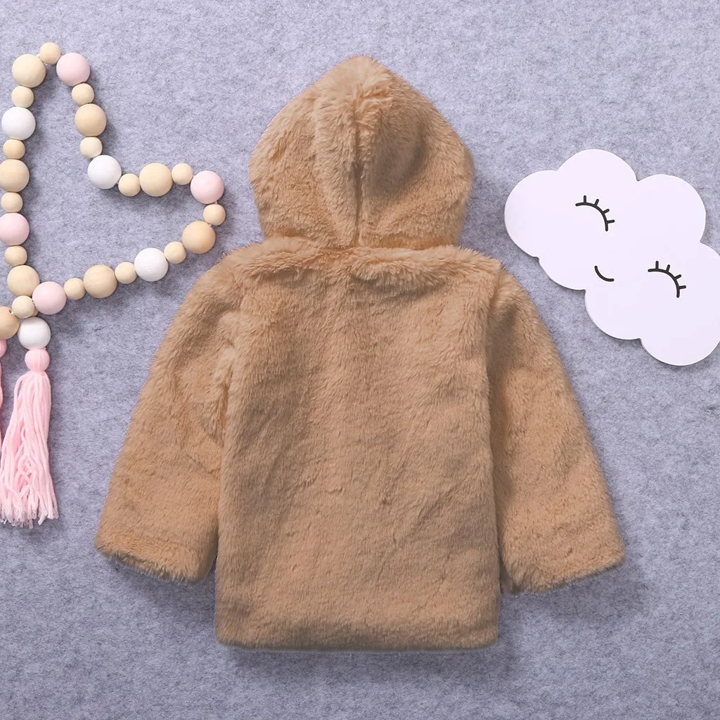 Детская зимняя теплая меховая куртка с капюшоном для маленьких девочек милый кардиган, верхняя одежда