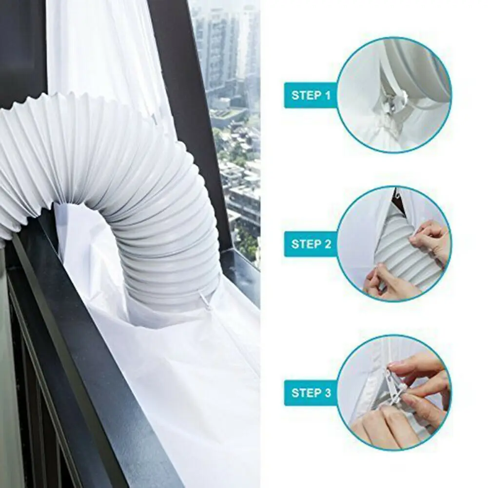 Характеристики: Изготовлен из высококачественного полиэстера и водонепроницаемого полиуретана, прочный для использования и не нужно беспокоиться о дождливых днях. Простая и быстрая установка для окон. Повышает производительность охлаждения и снижает потребление энергии. Suitable for any type of window: with side panels and with tilting opening. Идеально подходит для однотрубных и двухтрубных портативных кондиционеров. The window can normally be closed without having to remove the gasket.