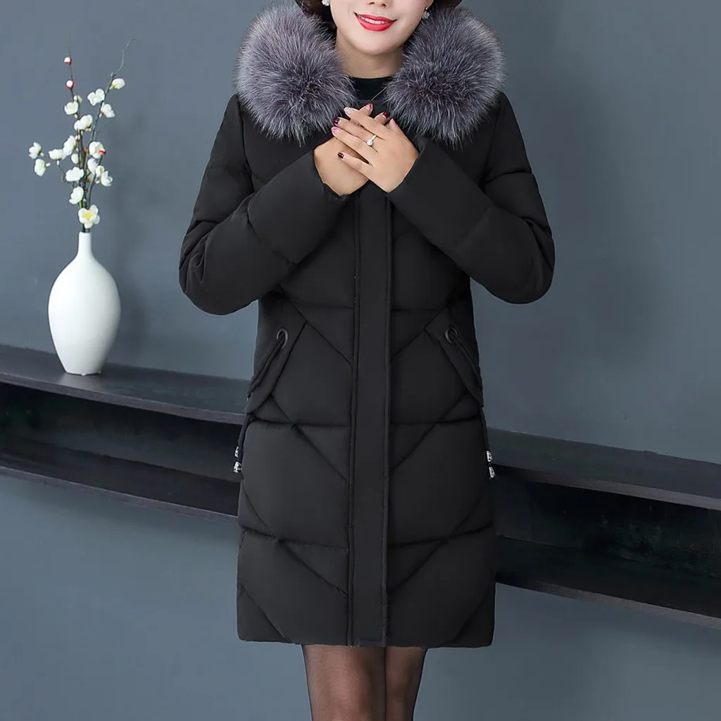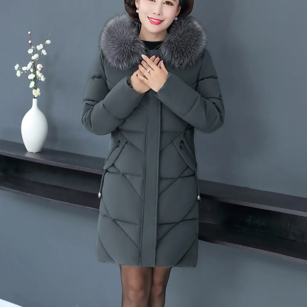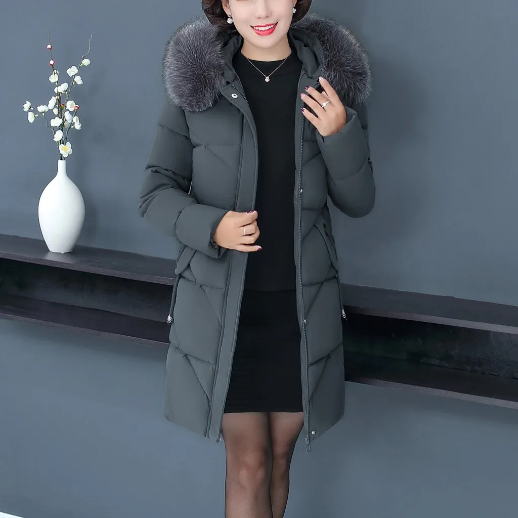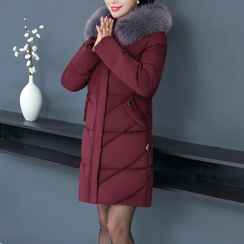 Женское пальто с меховым воротником, зимнее теплое длинное пальто большого размера плюс с капюшоном, верхняя одежда