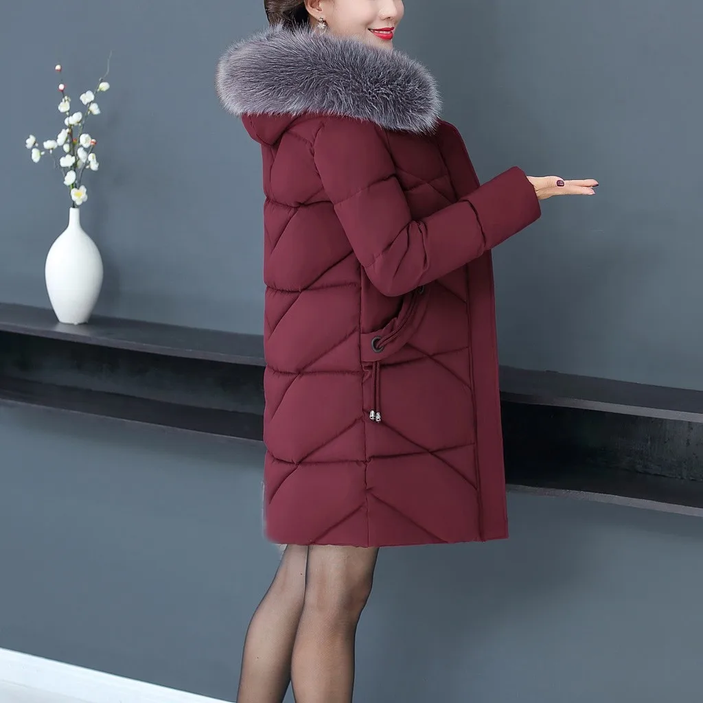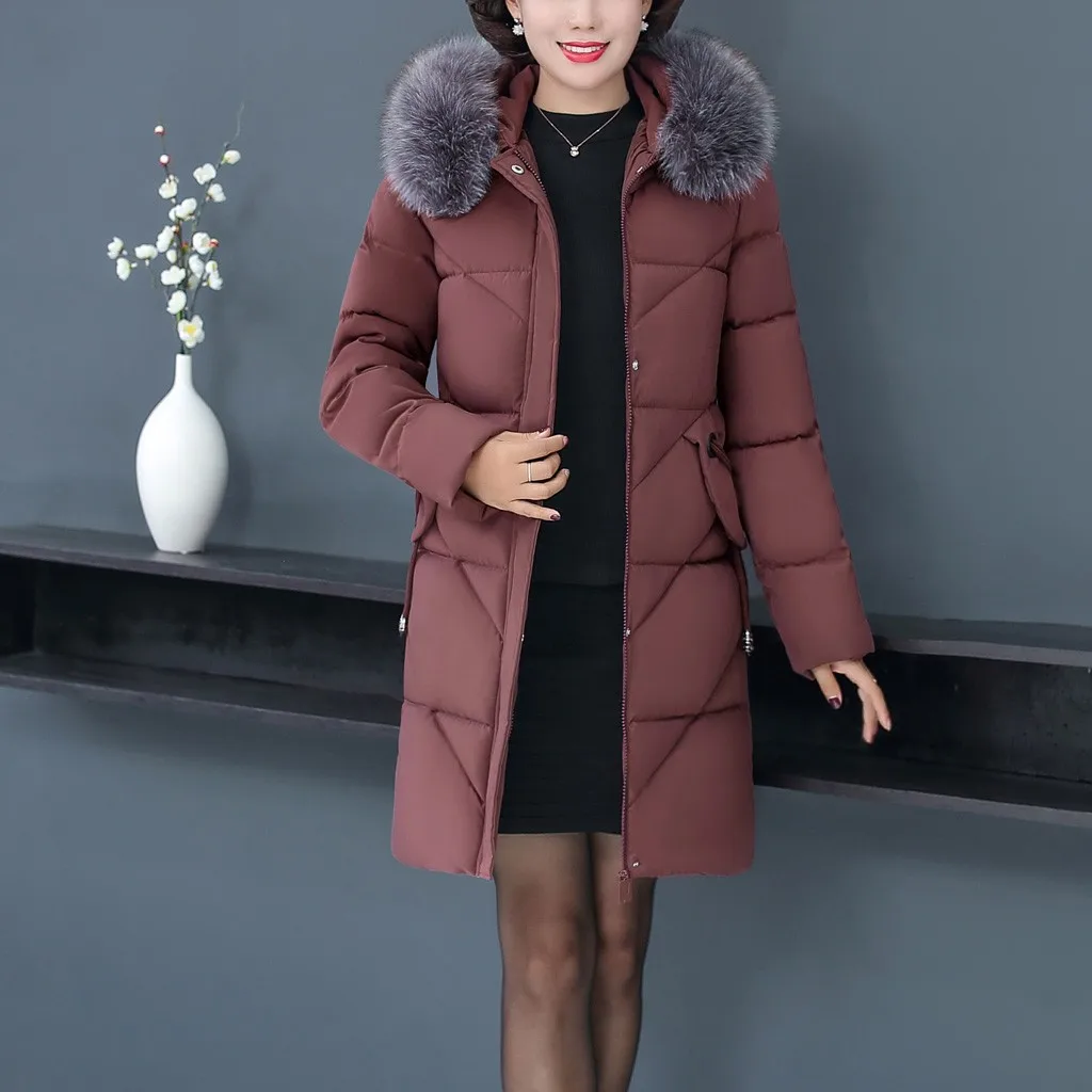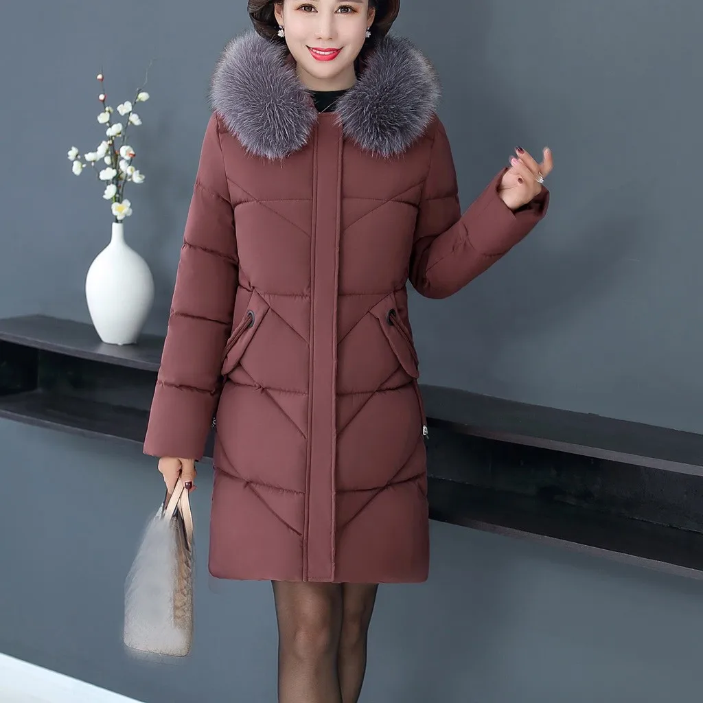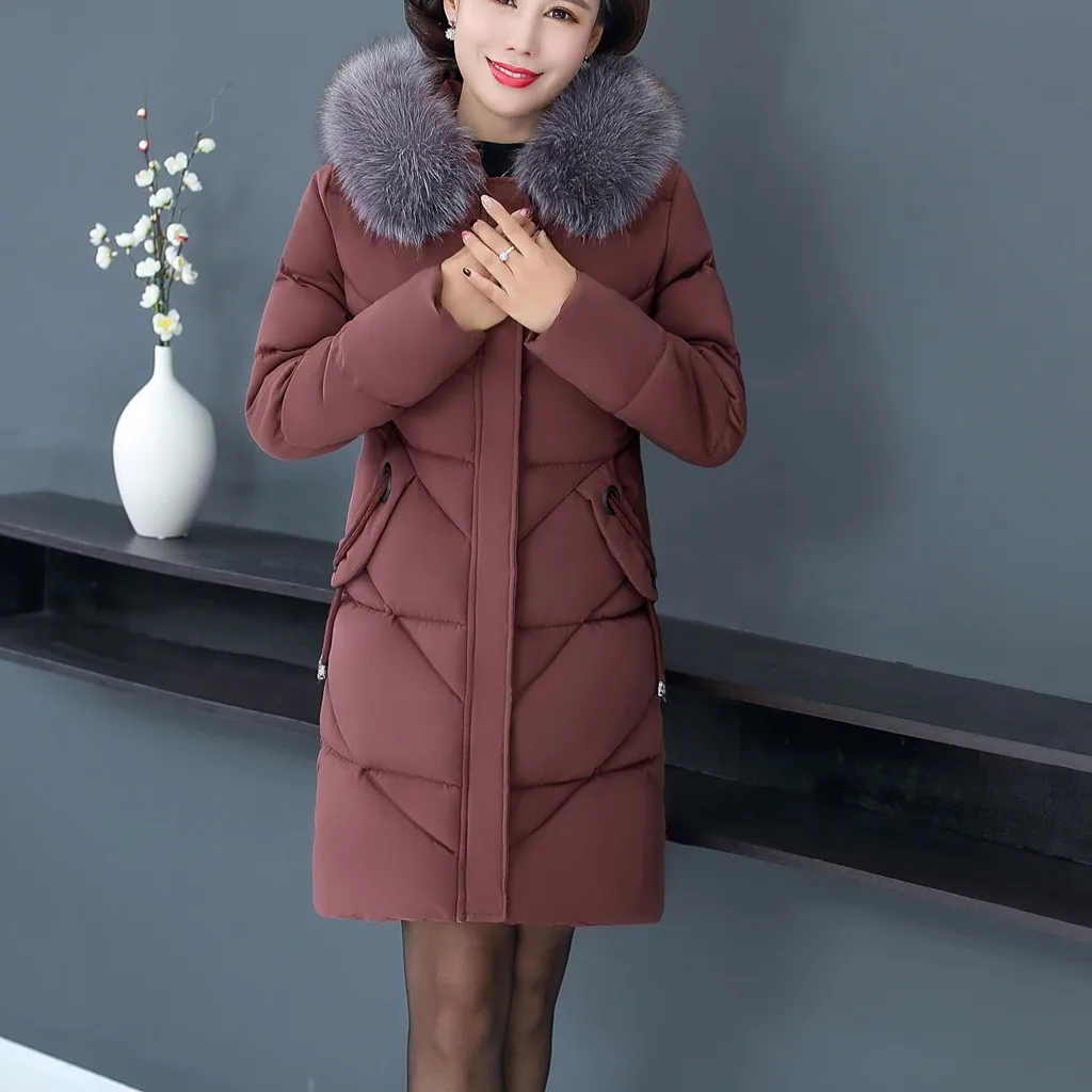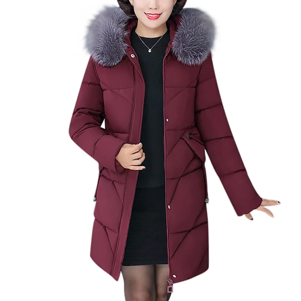 Женское пальто с меховым воротником, зимнее теплое длинное пальто большого размера плюс с капюшоном, верхняя одежда