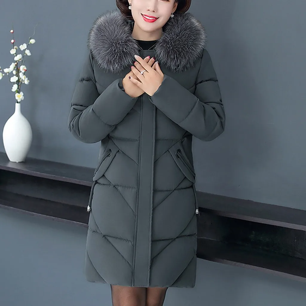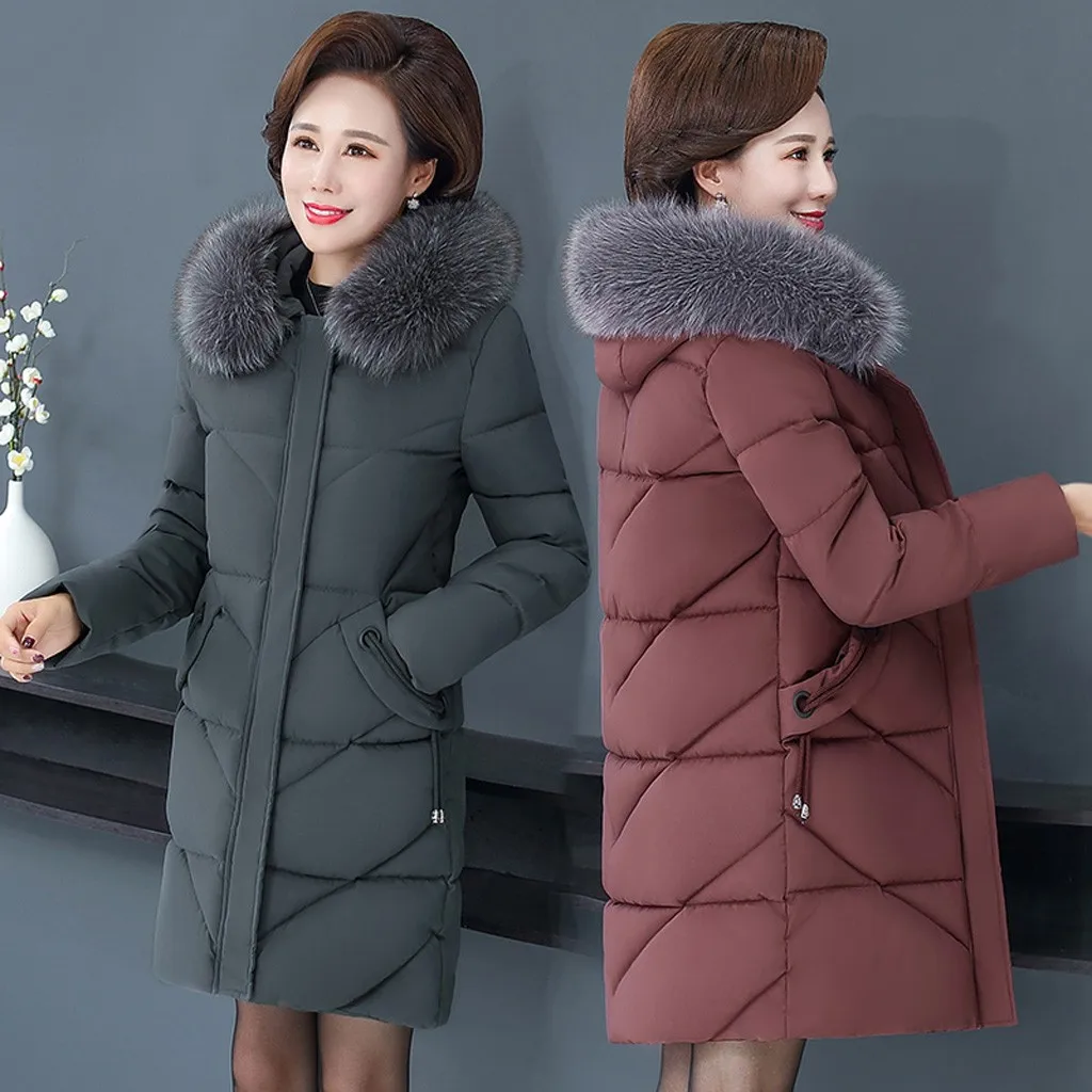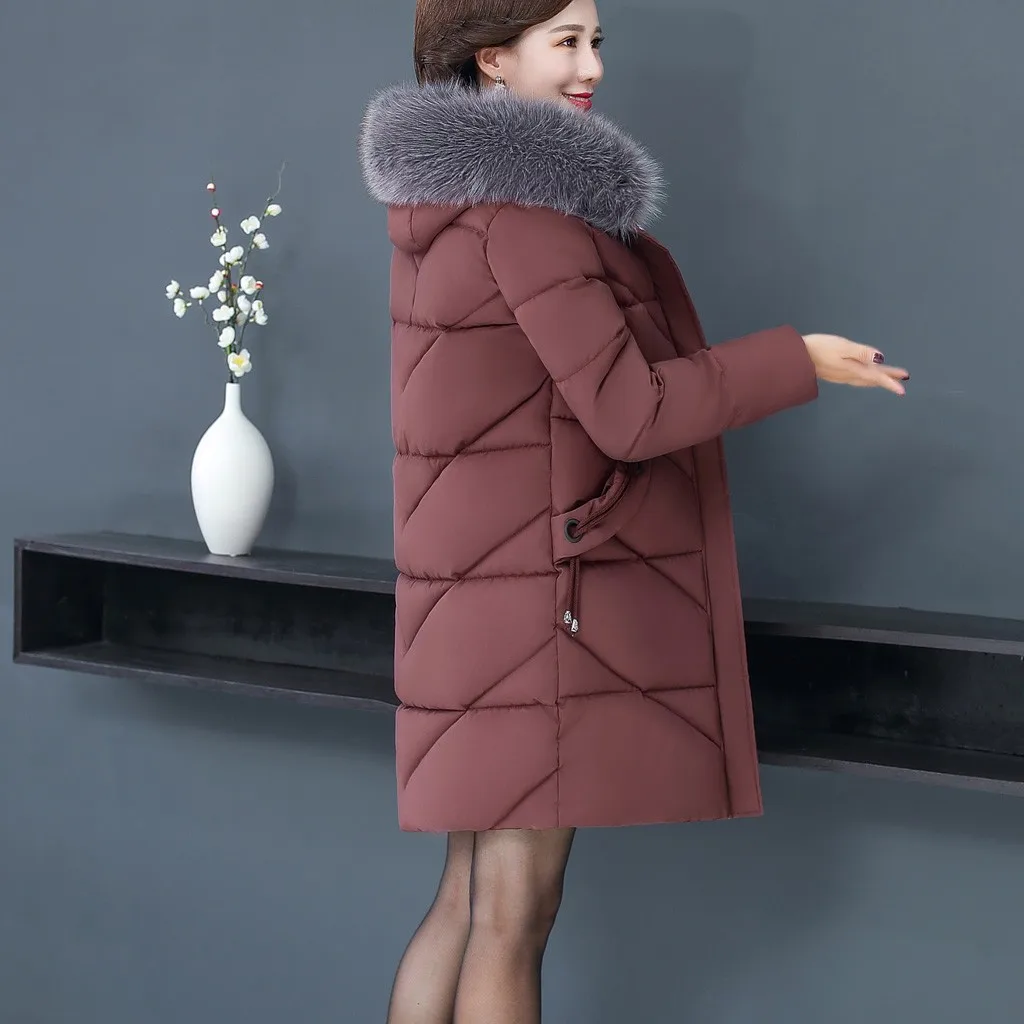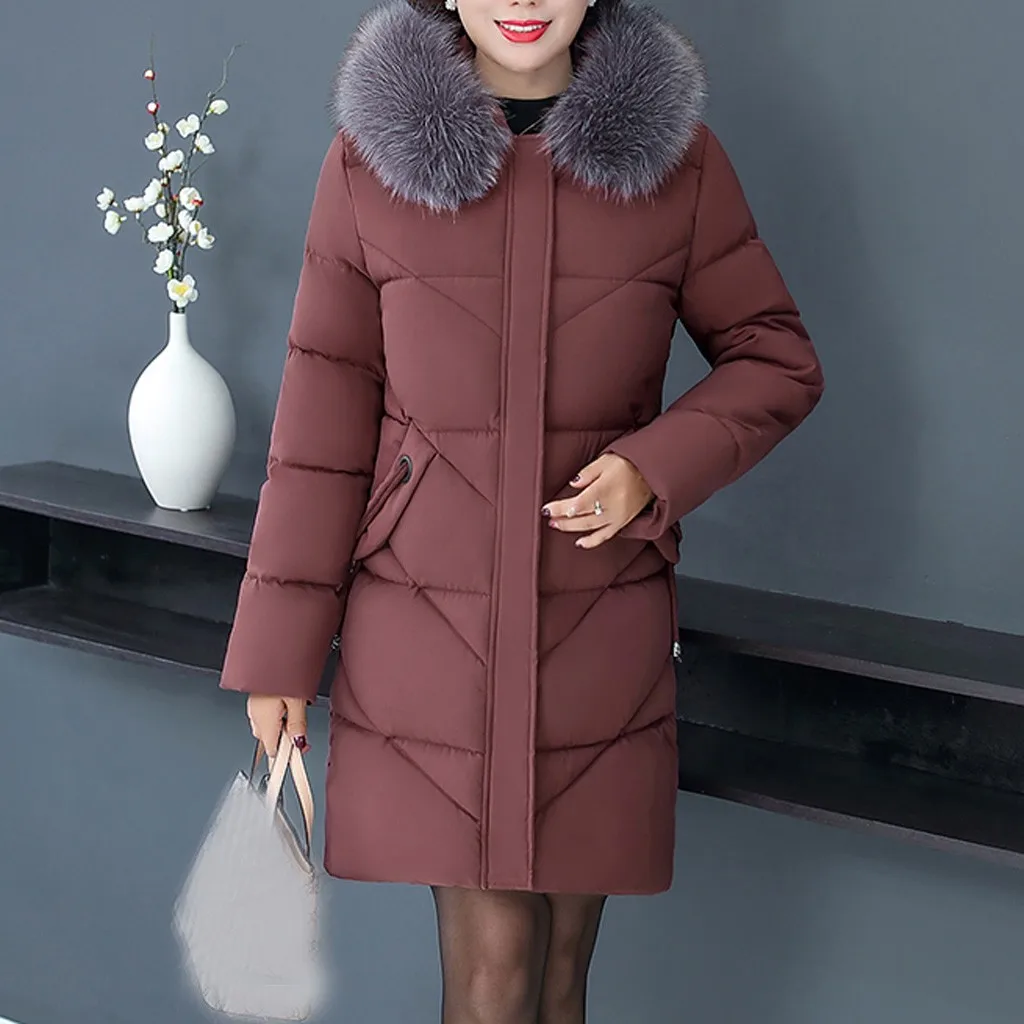 Женское пальто с меховым воротником, зимнее теплое длинное пальто большого размера плюс с капюшоном, верхняя одежда