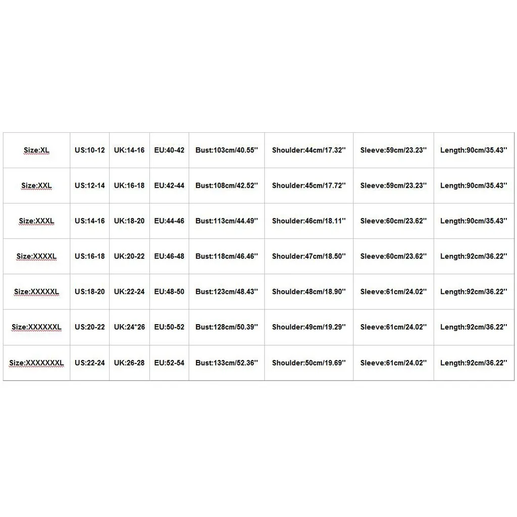 Размеры Свяжитесь с нами Великобритания ЕС Обхват груди Сумка на плечо Рукава Длина XL 10-12 14-16 Большие размеры 40-42 103 см/40,55'' 44 см/17,32'' 59 см/23,23'' 90 см/35,43'' XXL 12-14 лет 16-18 42-44 108 см/42,52'' 45 см/17,72'' 59 см/23,23'' 90 см/35,43'' XХХL 14-16 18-20 44-46 113 см/44,49'' 46 см/18,11'' 60 см/23,62'' 90 см/35,43'' XXXXL 16-18 20-22 46-48 118 см/46,46'' 47 см/18,50'' 60 см/23,62'' 92 см/36,22'' XXXXXL 18-20 22-24 48-50 123 см/48,43'' 48 см/18,90'' 61 см/24,02'' 92 см/36,22'' XXXXXXL 20-22 24*26 В переменного тока, 50-52 128 см/50,39'' 49 см/19,29'' 61 см/24,02'' 92 см/36,22'' XXXXXXXL 22-24 26-28 52-54 133 см/52,36'' 50 см/19,69'' 61 см/24,02'' 92 см/36,22''