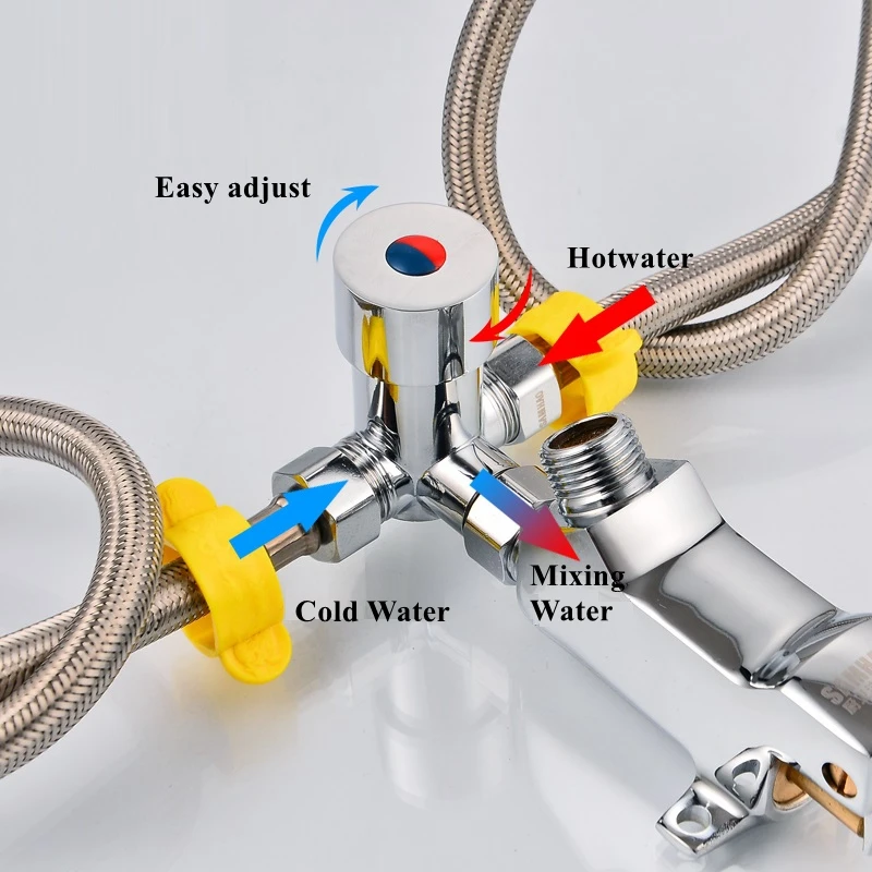 1, увеличенная толщина латунный клапан обеспечивает стабильную работу и длительный срок службы. 2-простое управление соотношением горячей и холодной воды для регулировки температуры воды. 3-один конец холодную воду на входе, один конец горячей воды на входе, и на Ближнем смешанной воды на выходе, прост в установке и использовании. 4-G1/2 стандартная резьба подходит для многих бытовых или коммерческих труб. 5-встроенный обратные клапаны эффективны в том, чтобы избежать кран для горячей и холодной воды обратного потока. Посылка включает в себя: товар, выбранный