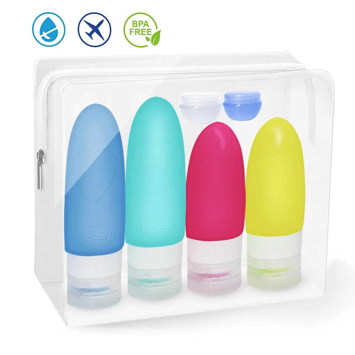 Описание продукта: Особенности: ☆Многоразовые бутылки для путешествий: Эти бутылки для шампуня для путешествий являются экологически чистыми, их можно использовать повторно. ☆Герметичные дорожные бутылки: с тремя слоями защиты от протечек, не нужно беспокоиться о утечке в вашем багаже. ☆TSA одобренные бутылки для путешествий: Полностью безопасный силиконовый материал, одобренный tsa, легкий и безопасный для sqeeze. ☆Идентификация по цвету: разные цвета позволяют легко различать или сортировать вещество в каждой бутылке для путешествий. ☆Широкая открытая крышка: легко для вашего пополнения 3 oz бутылки путешествия и мыть внутри., очень сладкий дизайн. ☆Применение: идеальный подарок для вашей девушки, жены, знаменитостей, очень практичный аксессуар для путешествий. Технические характеристики: ★Наименование товара: Бутылочка для путешествий ★Цвет: как на изображении Пакет напылением Упаковочный лист: 2x90 мл силиконовые бутылки 2x60 мл силиконовые бутылки 2x круглые банки 1x сумка для хранения