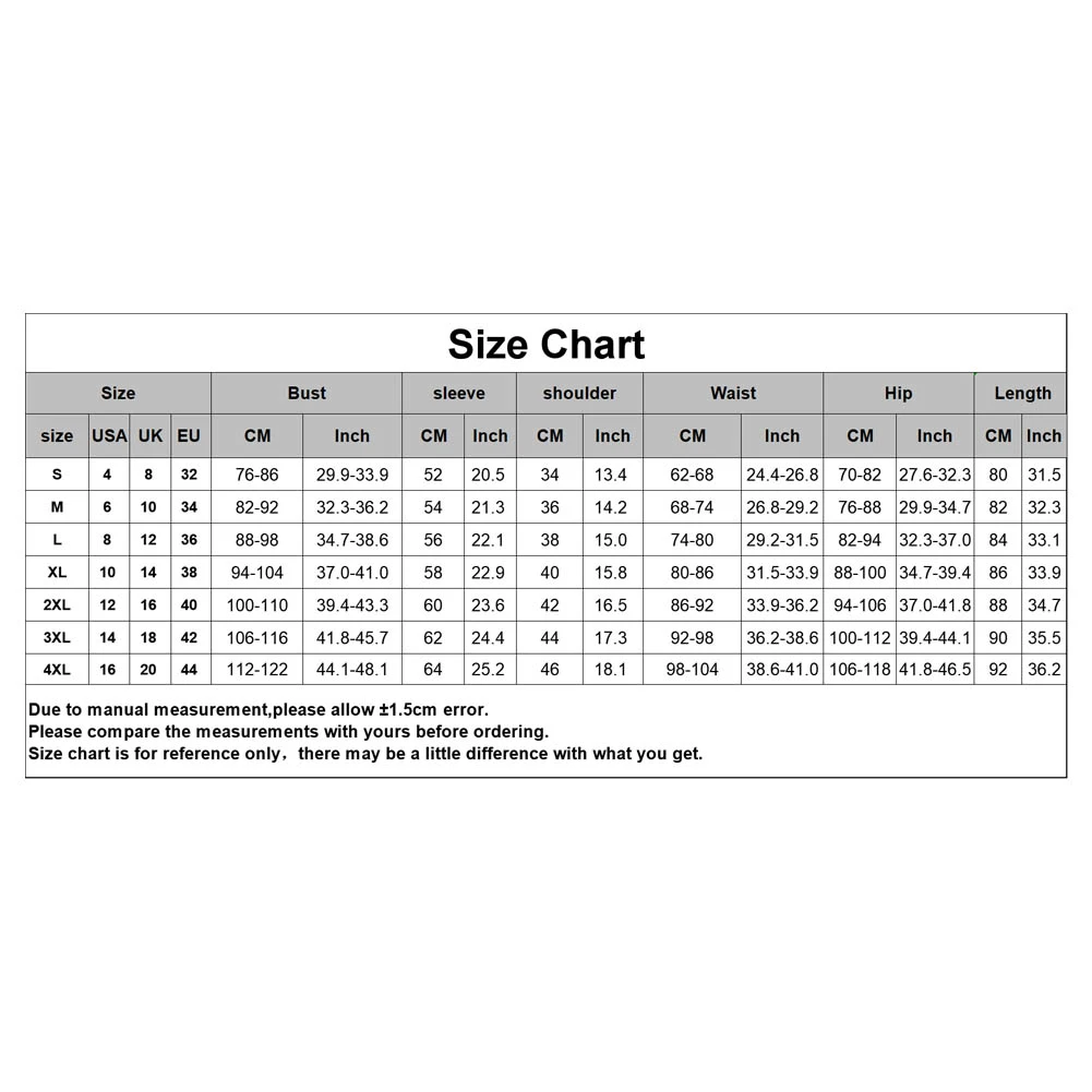 [Наш Размер XL] Обхват груди: 94 см-104 см/37,0 дюйма-41,0 дюйма, обхват талии: 80 см-86 см/31,5 дюйма-33,9 дюйма, обхват бедер: 88 см-100 см/34,7 "-39,4", плечо: 40 см/15,8 ", рукав: 58 см/22,9", Длина: 86 см/33,9 "(прибл.)