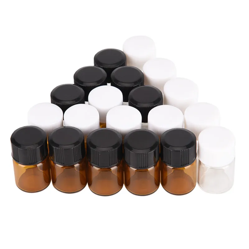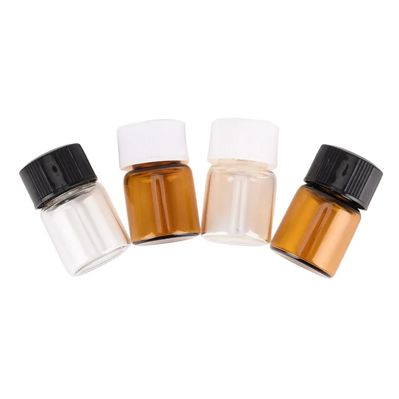 Мини стеклянная бутылка для образцов с черной/белой винтовой крышкой