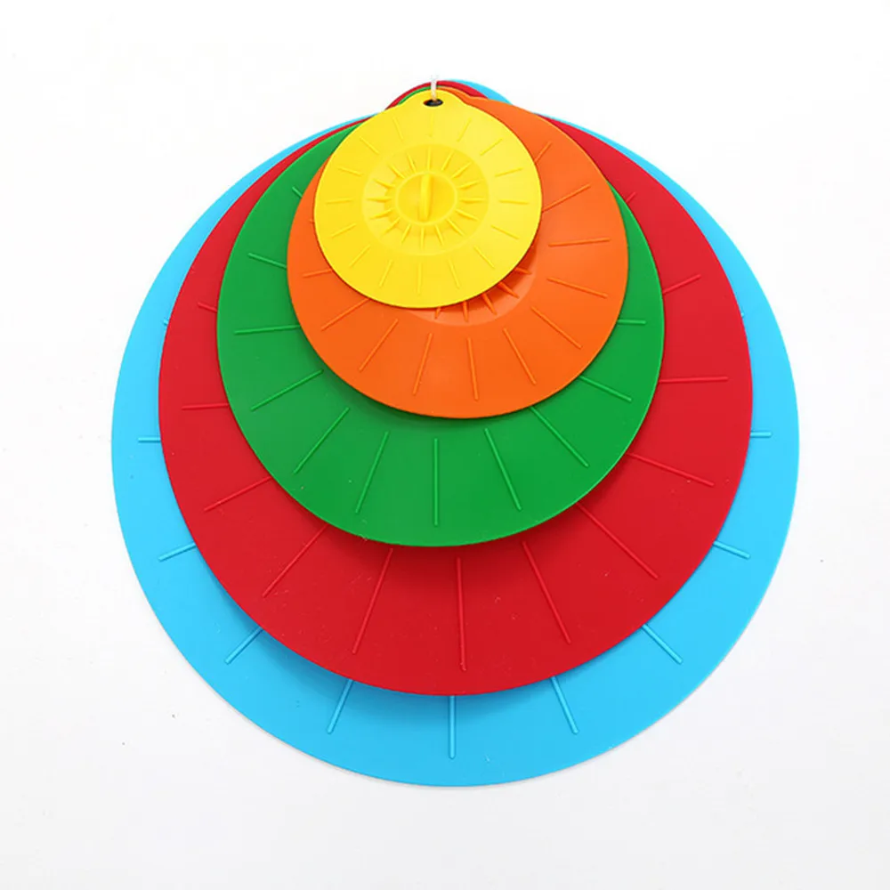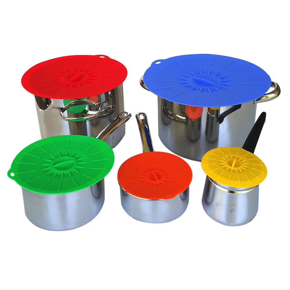 Перестаньте использовать пластиковые крышки, чтобы покрыть ваши миски/кастрюли, это более безопасные и здоровые силиконовые крышки поставляются! Этот набор из 5 крышек разных размеров может полностью удовлетворить ваши требования к приготовлению пищи. Их 100% пищевой силиконовый материал соответствует стандартам сертификации FDA, нетоксичный, без запаха, прочный и гибкий. Просто получите эту функциональную кухонную утварь.