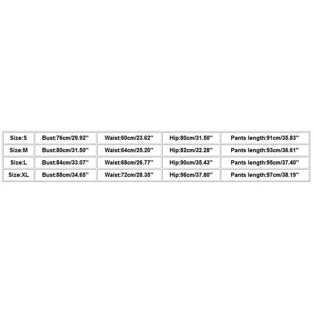 Размер Бюст Талия Бедра Длина брюк S 76 см/29,92'' 60 см/23,62'' 80 см/31,50'' 91 см/35,83'' М 80 см/31,50'' 64 см/25,20'' 82 см/32,28'' 93 см/36,61" L 84 см/33,07'' 68 см/26,77'' 90 см/35,43'' 95 см/37,40'' XL 88 см/34,65'' 72 см/28,35'' 96 см/37,80'' 97 см/38,19''