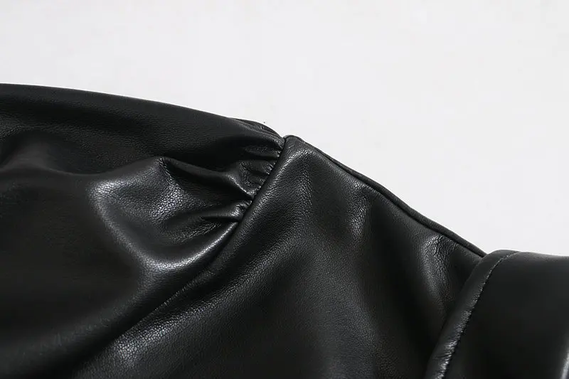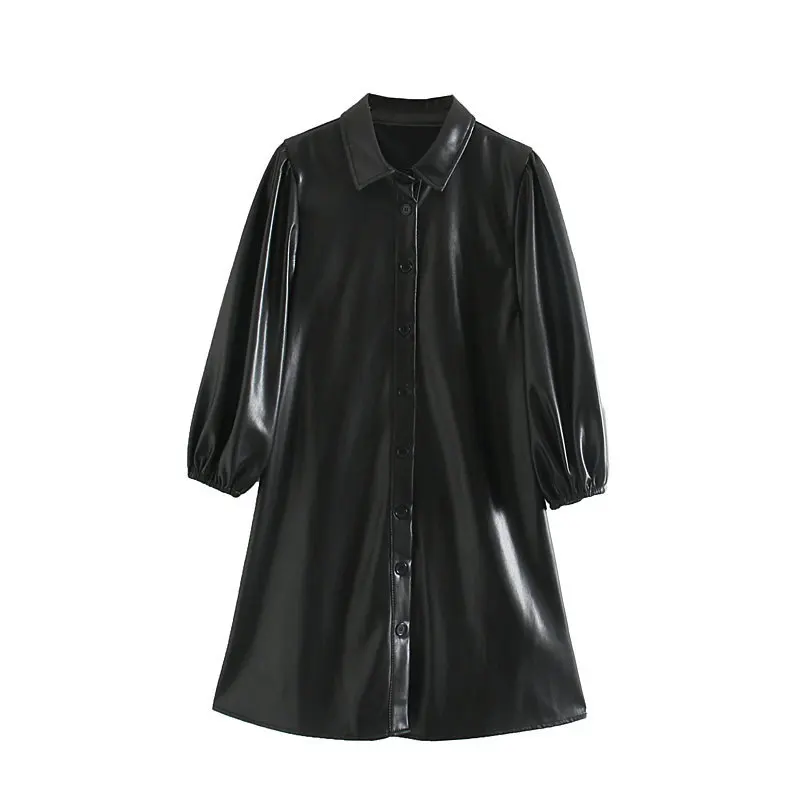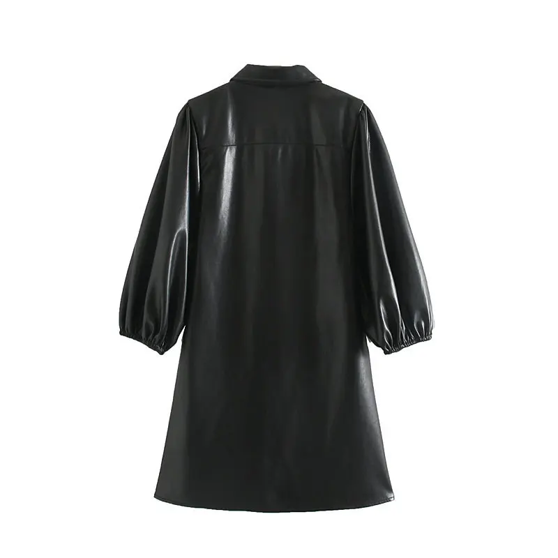 Зимние платья, женское модное платье из искусственной кожи, женские элегантные мини-платья с отложным воротником и пышными рукавами для женщин