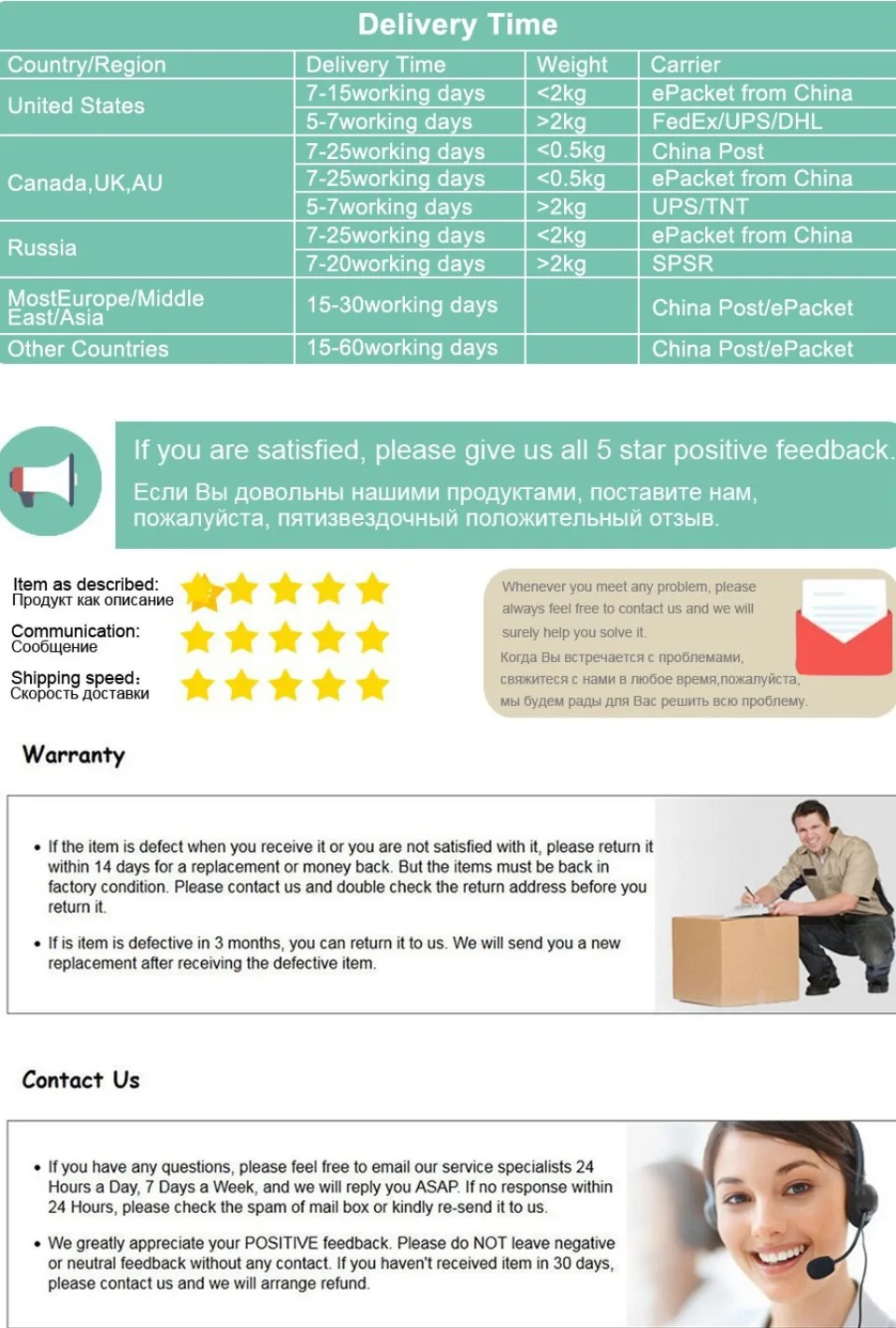 В тех случаях, когда Вы Получены Это Детали Вы Свой заказ 24 Часа, пожалуйста, Проверка Это Перед оформлением заказа. В том случае, если Вы Не Получите Это В течение Доставка Время Или Другие У вас есть вопрос, пожалуйста,