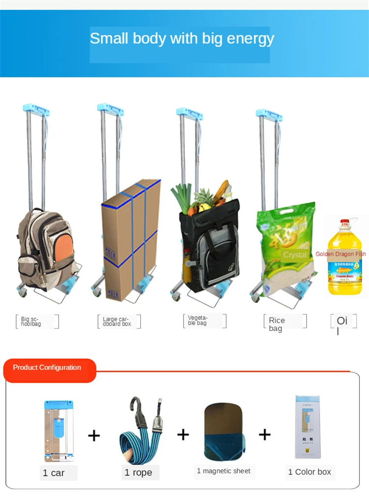 E-FOUR складная корзина для скалолазания лестницы тележка Бакалея Прачечная утилита электронной ручной тележки колесные подшипники мини тележка голубой цвет