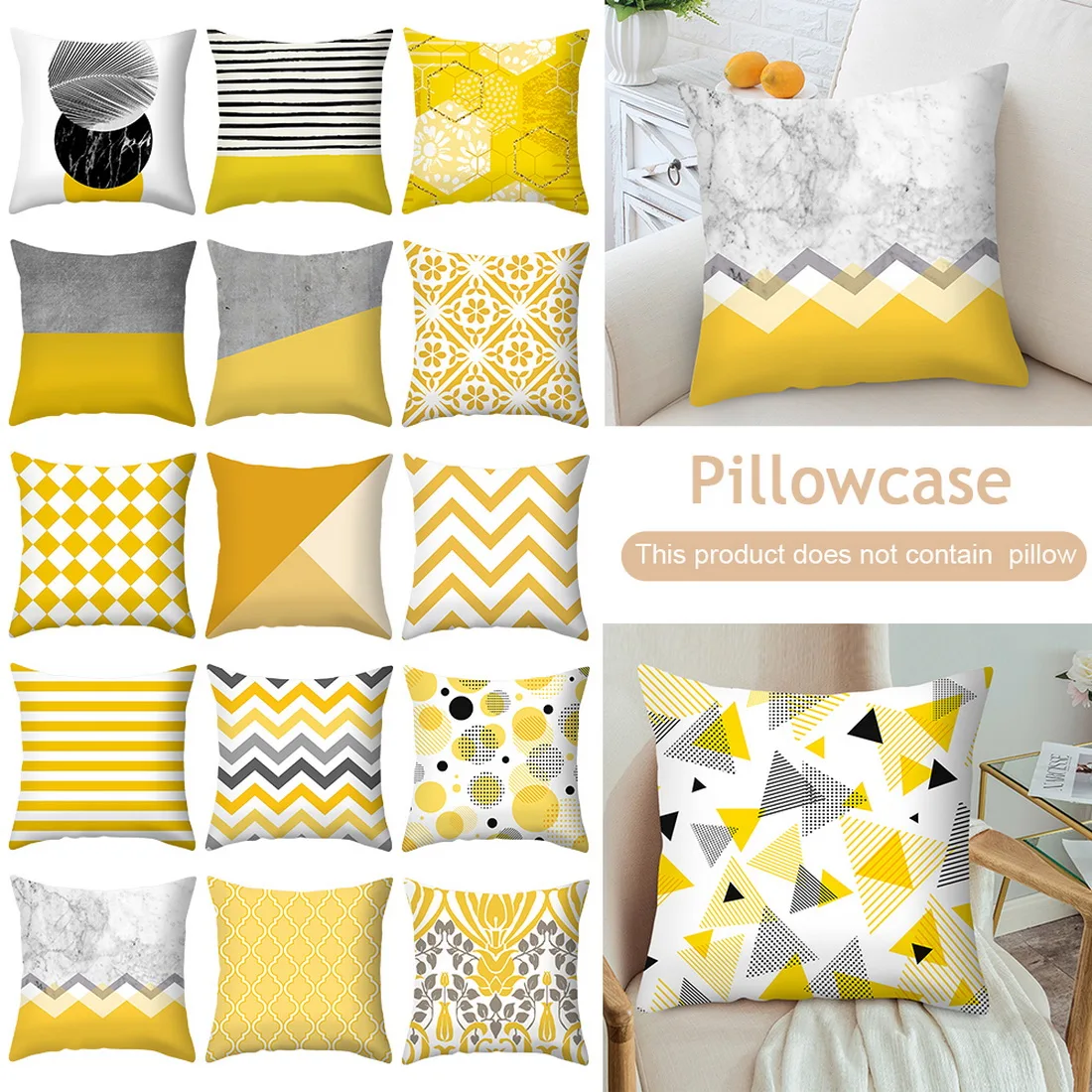 Особенности Домашний декор желтый принт наволочка, узор только с одной стороны с другой стороны пустой, предоставляя вам возможность DIY Модный чехол для подушки с геометрическим принтом, мягкий и удобный для использования Чехол для подушки из прочной полиэфирной ткани и уникальный дизайн создают стильный комфорт на диване, диване, полу, скамейке или кровати