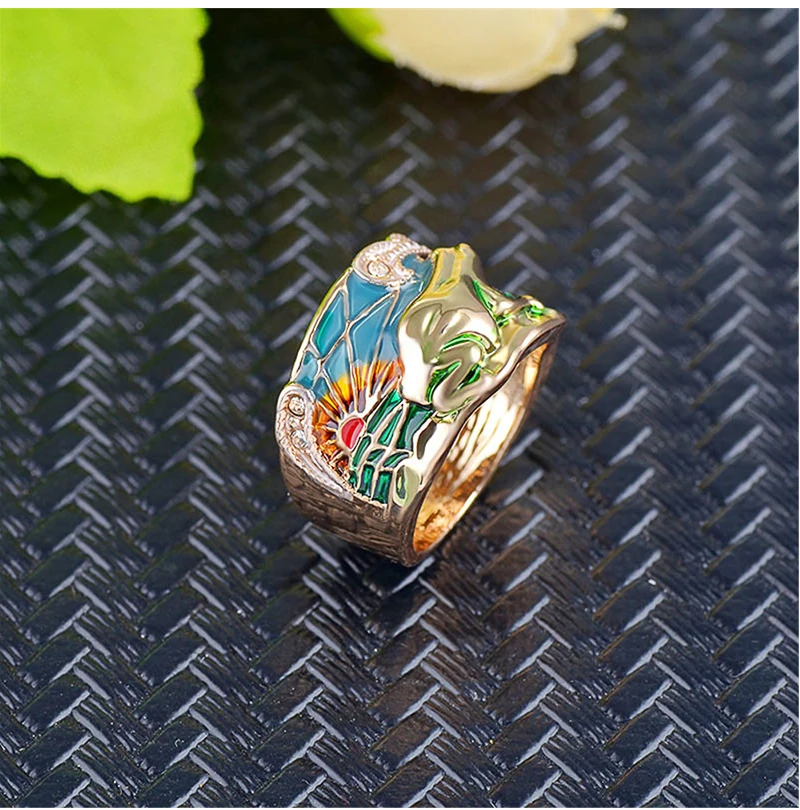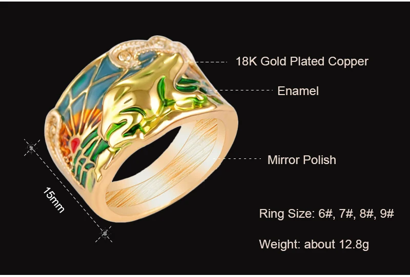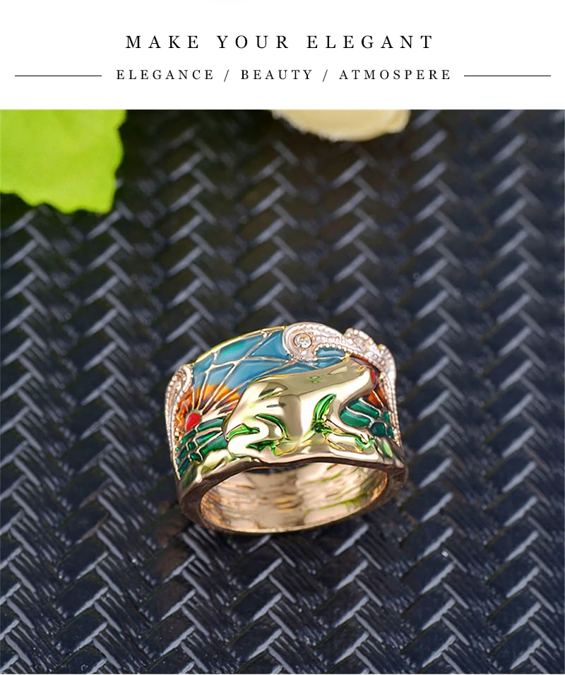 Yanda модно, зеленая эмаль, широкое кольцо новинка; Красивая дизайнерская лягушка золото Цвет блестящие Ювелирное Украшение с изображением животных, для женщин вечерние подарок