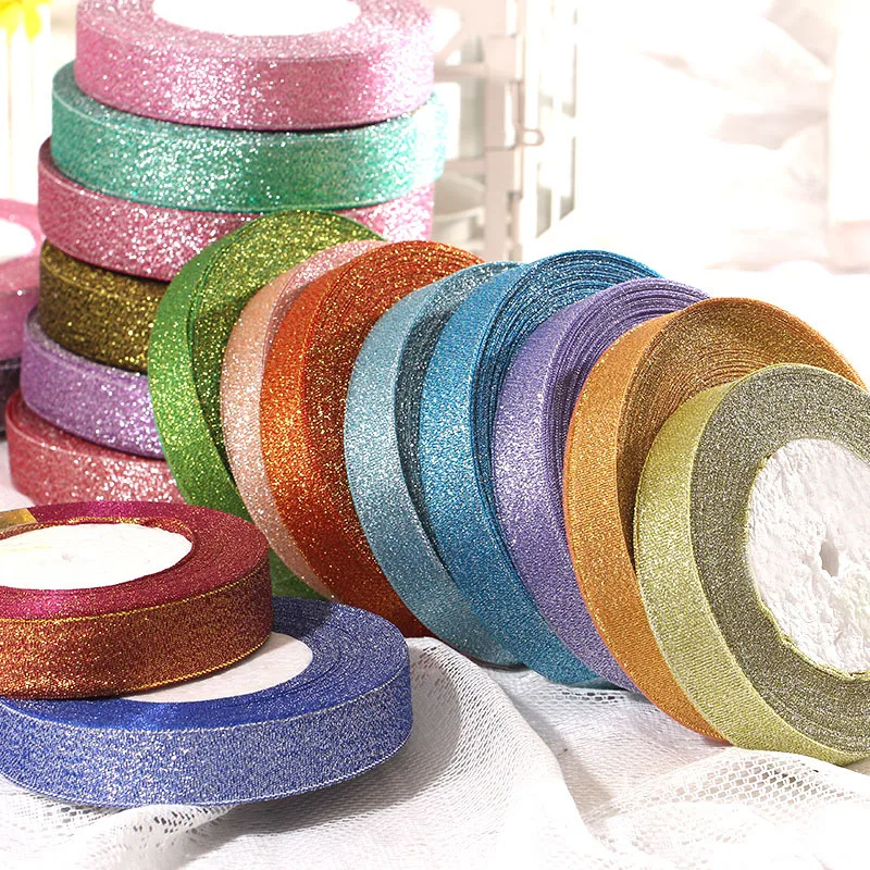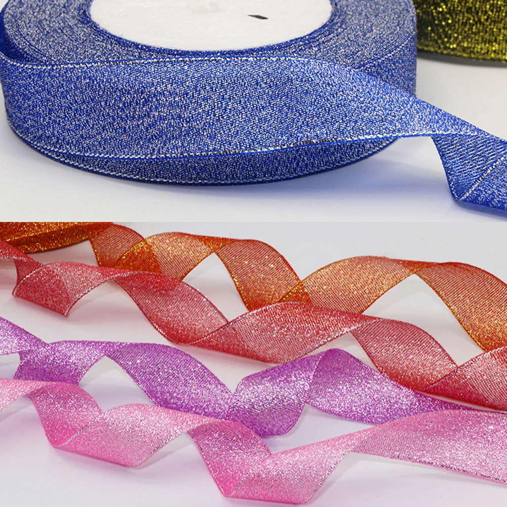 25Yard1in ручная работа серебряная металлическая Блестящая лента для подарочных упаковок