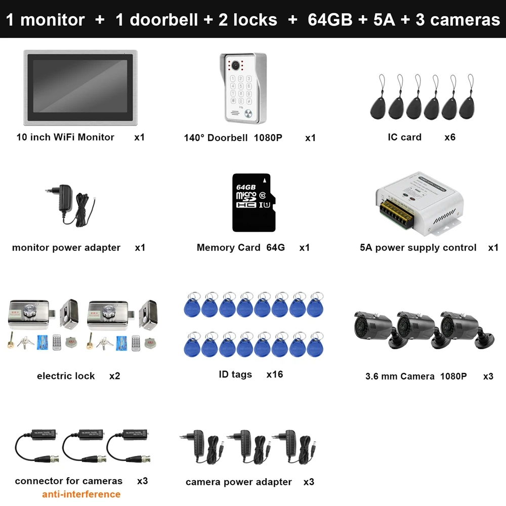 10 дюймов полный сенсорный Экран Wi-Fi видео домофон Системы