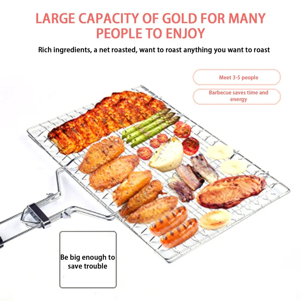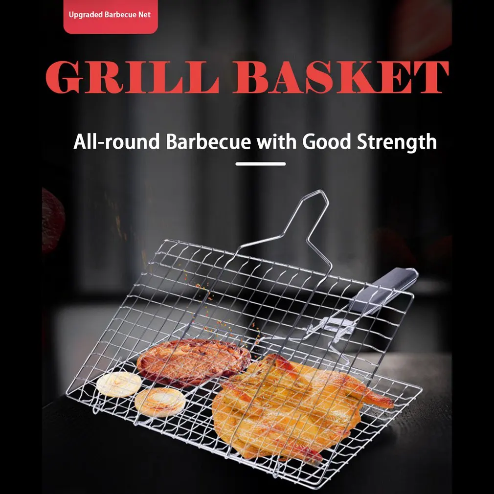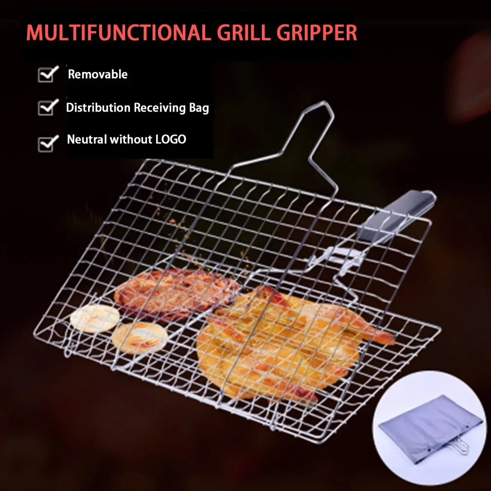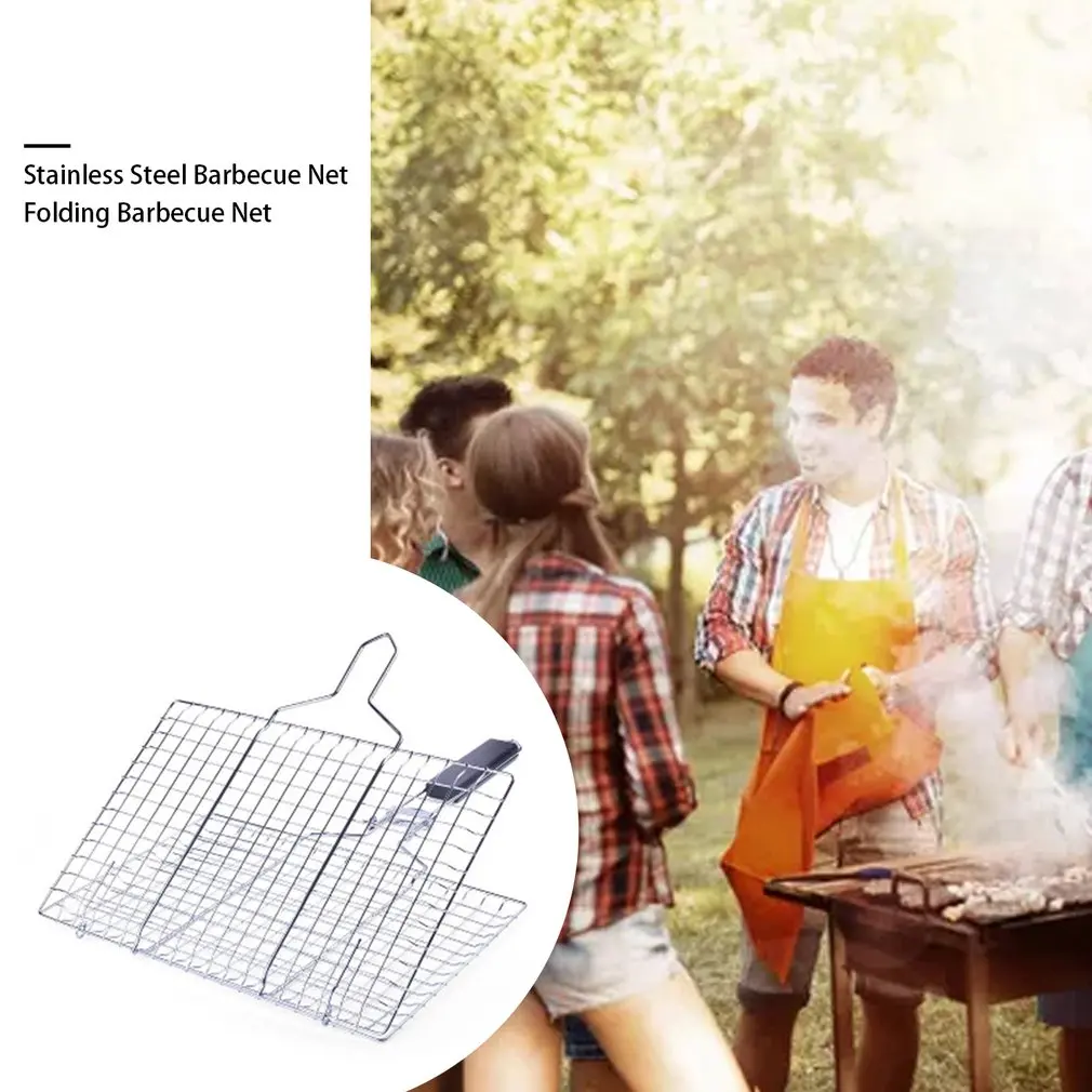Bbq Stainless Steel Grilled Net Detachable Grill Net Folding Grill Square Grilled Vegetable Basket Grilled Fish Net Clip