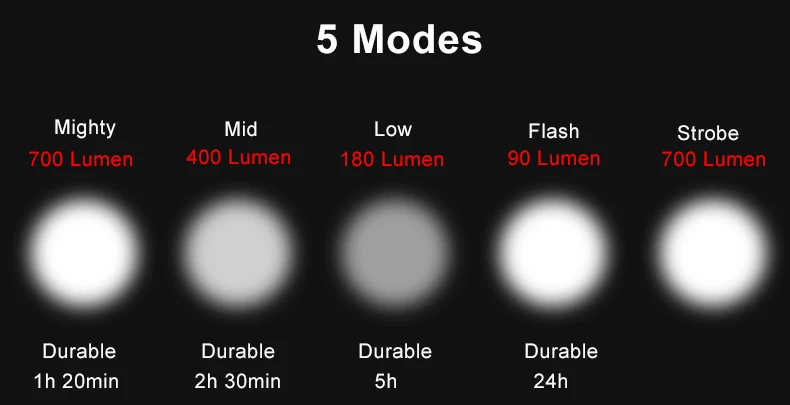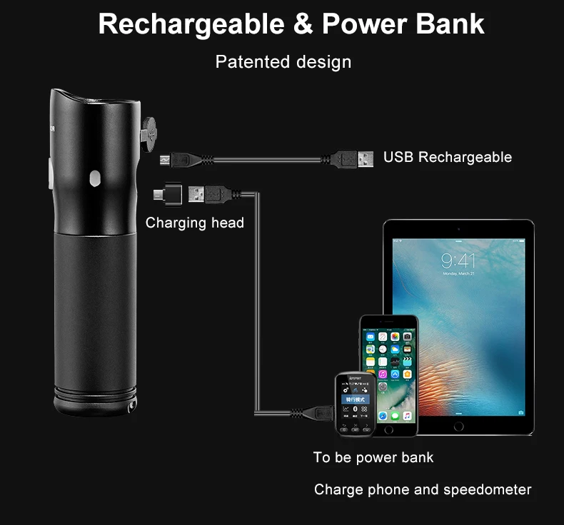 8)Быстрая зарядка через USB, Цифровой регулируемый выход-поддерживает постоянную яркость