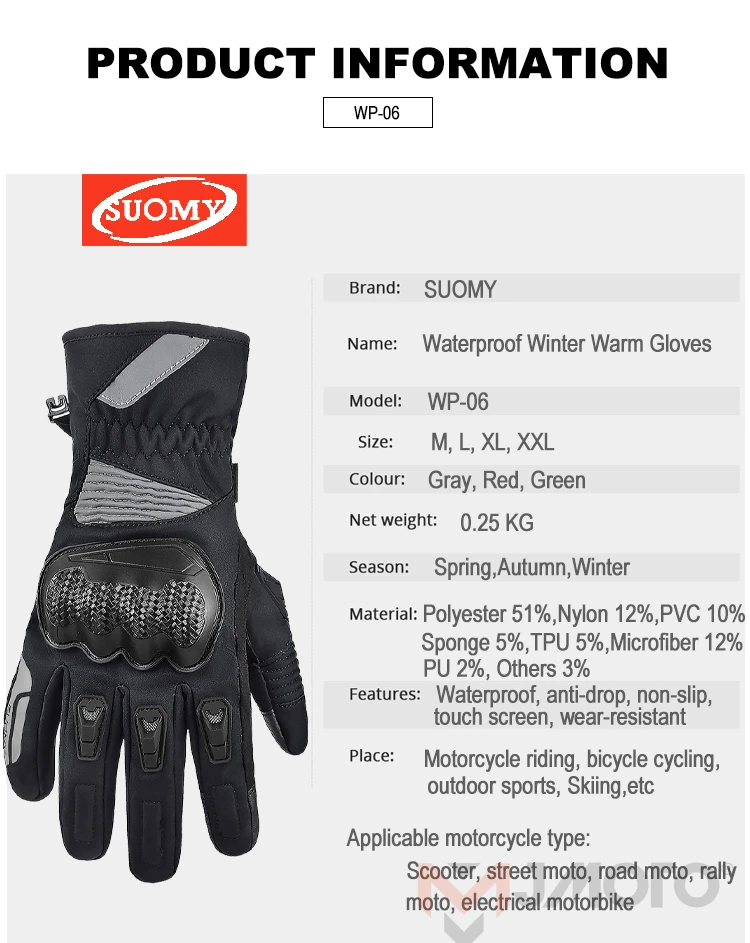 WP-06 SUOMY зимние Новые 100% водонепроницаемые перчатки видео