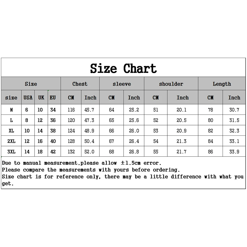 [Наш Размер M] Обхват груди: 116 см/45,7 дюйма, рукав: 64 см/25,2 дюйма, ширина плеч: 51 см/20,1 дюйма, длина: 78 см/30,7 дюйма (прибл.)