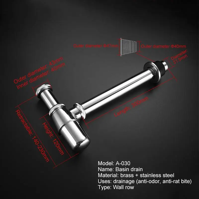 Высота может быть отрегулировано 5,5 "-9,05"(140 мм-230 мм) от центра выводной сифон, на выходе до нижней части трубы.
