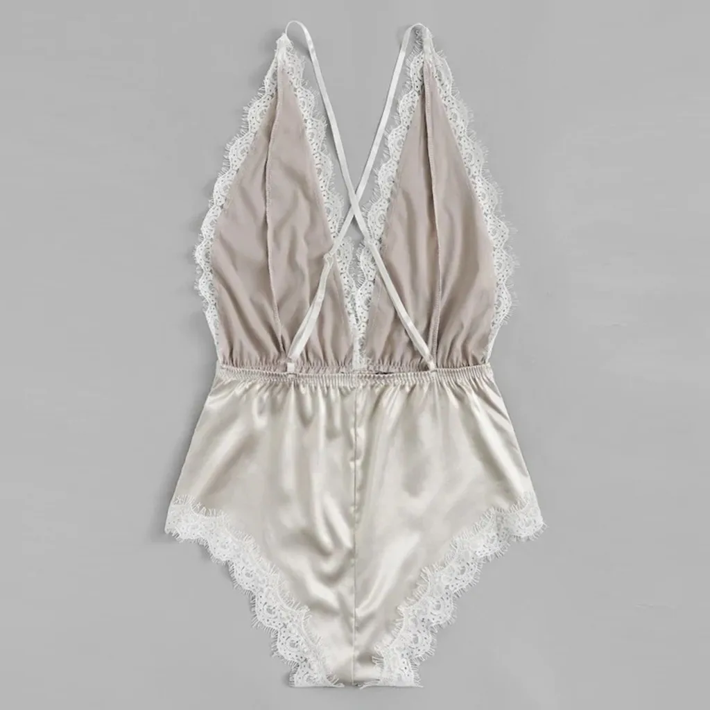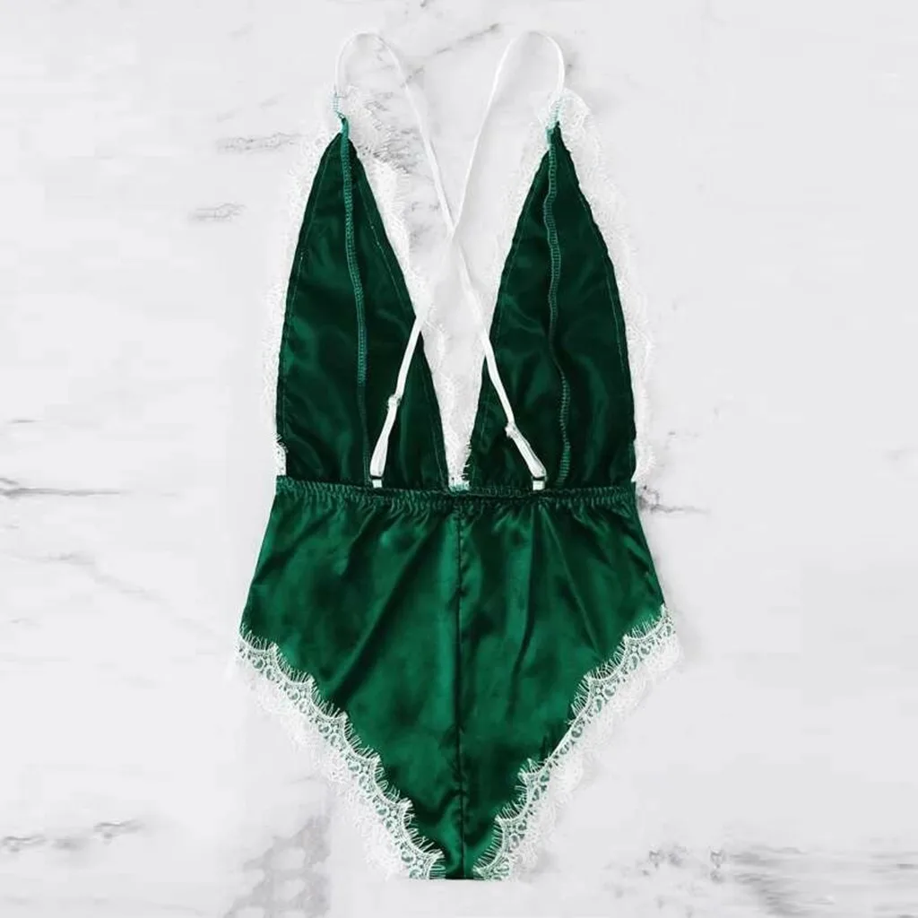 Женское атласное Кружевное боди с v-образным вырезом, комбинезон с открытой спиной, пижама, нижнее белье