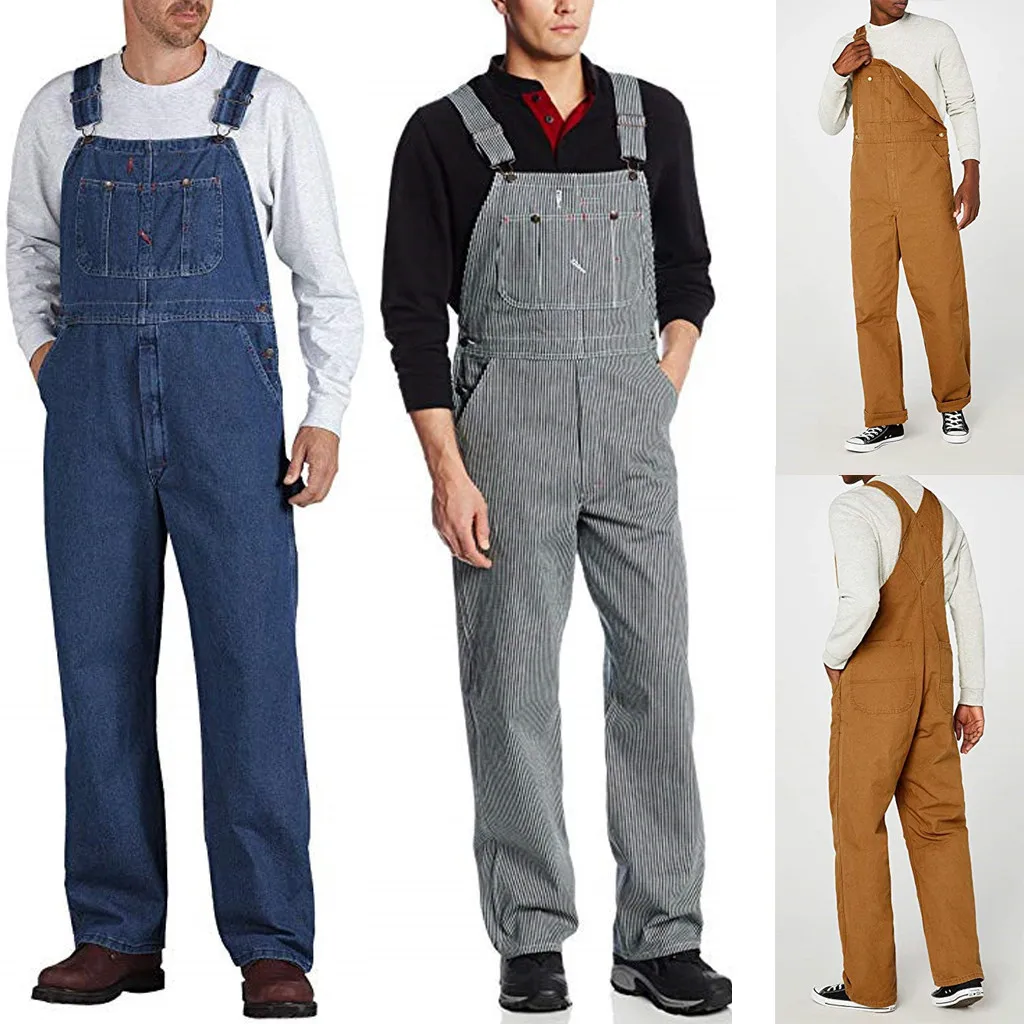 Мужские новые модные повседневные джинсовые Рабочие Комбинезоны на подтяжках