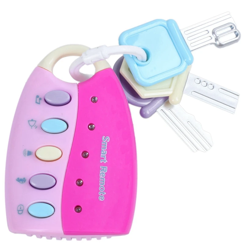 Полный набор ролевых ключей, как у мамы и папы. различные кнопки создают звуки, которые имитируют звук открытия или закрытия автомобиля, «Звуковой сигнал», дверной звонок, автомобильный клаксон, зажигание двигателя и 10 различных песен. он также имеет мигающий светильник.