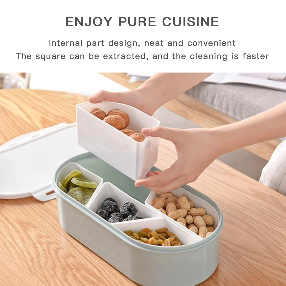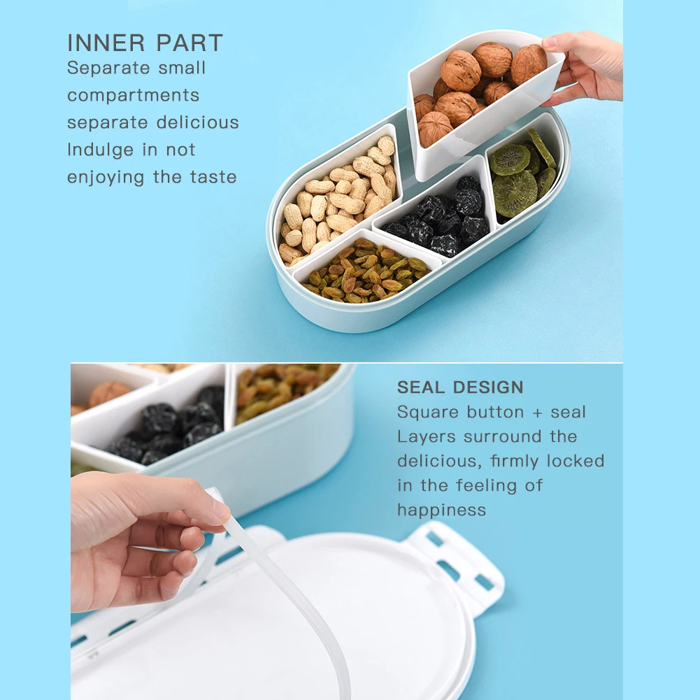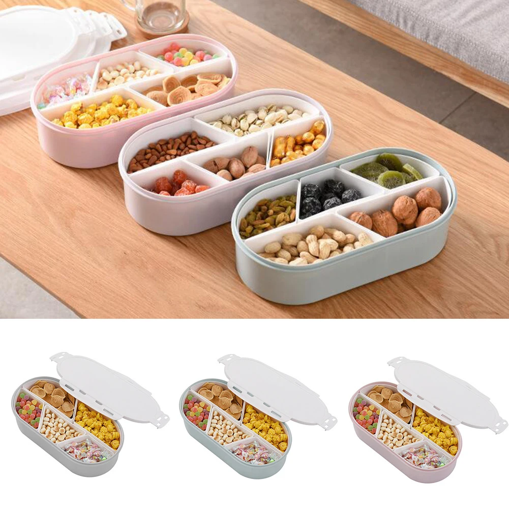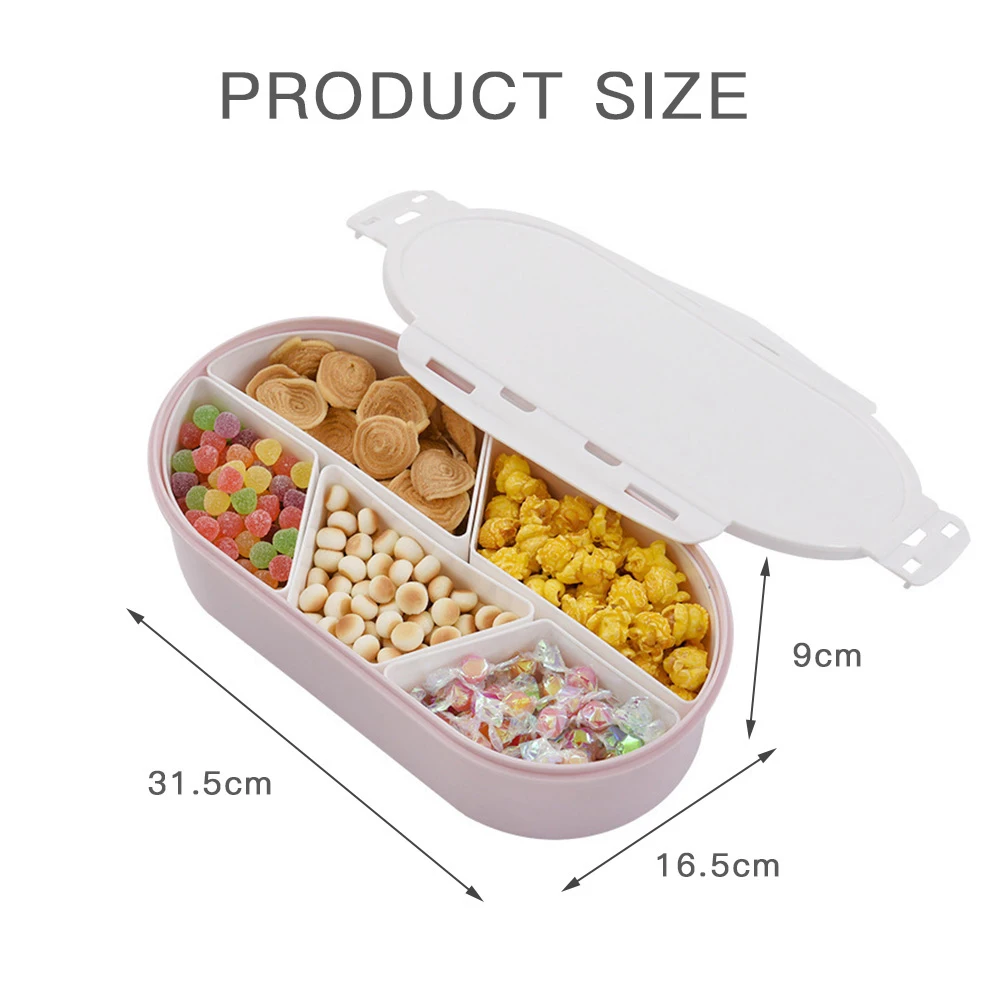 Название продукта: сервировочный контейнер для конфет и орехов, лоток для закусок с крышкой, 5 отделений, пластиковый органайзер для хранения еды, разделенная тарелка для закусок для кемпинга, блюдо с крышкой