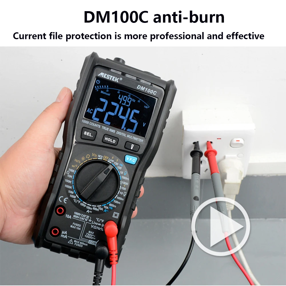Когда предохранитель разбивается, DM100C подскажет предохранитель на экране и подаст звуковой сигнал, чтобы пользователь мог точно найти текущее состояние мультиметра и повысить эффективность обслуживания и проверки.