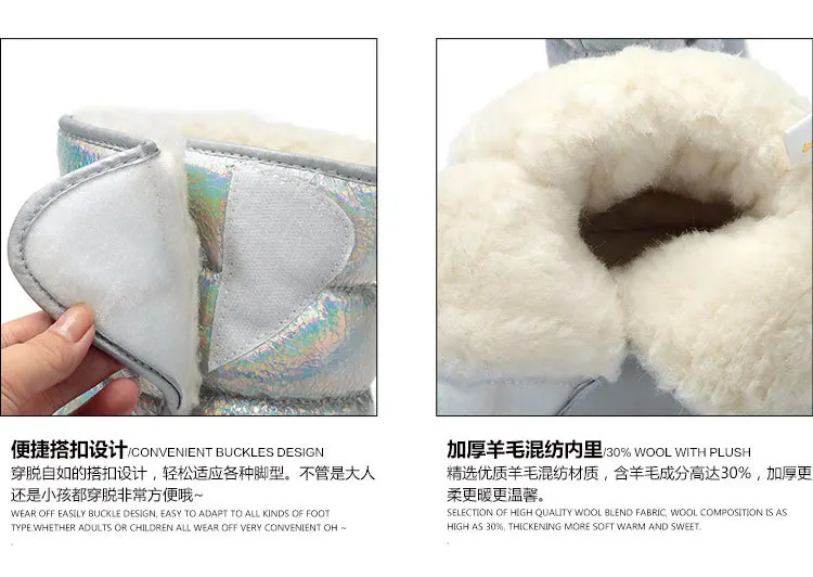 Материал: блестящая ткань с синтетическим покрытием Подкладка: 30% шерсть с плюшем Подошва: подошва из термопластичной резины Цвета: 4 цвета, как на картинке Возраст: подходит для детей 2-16 лет