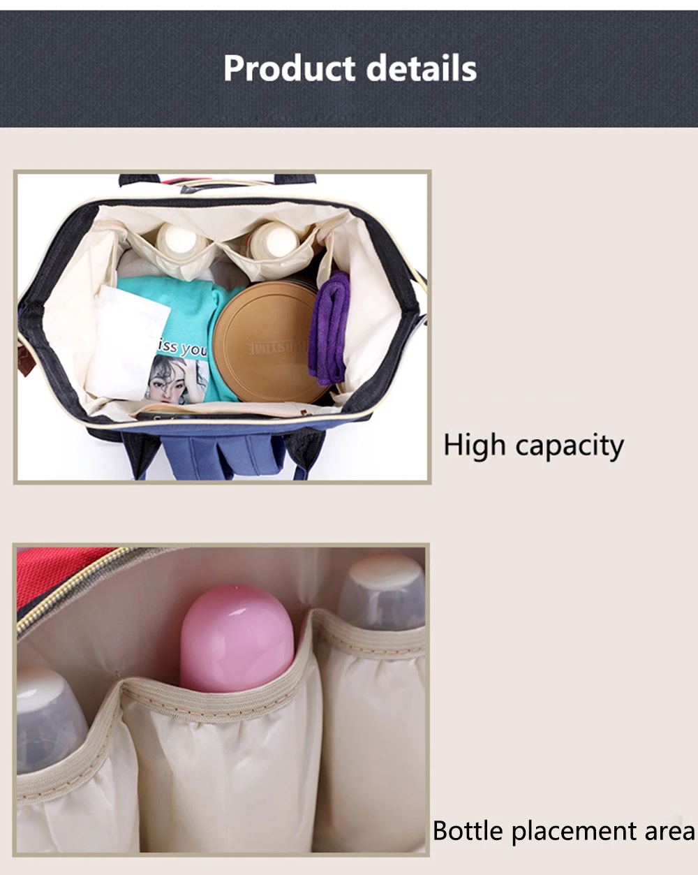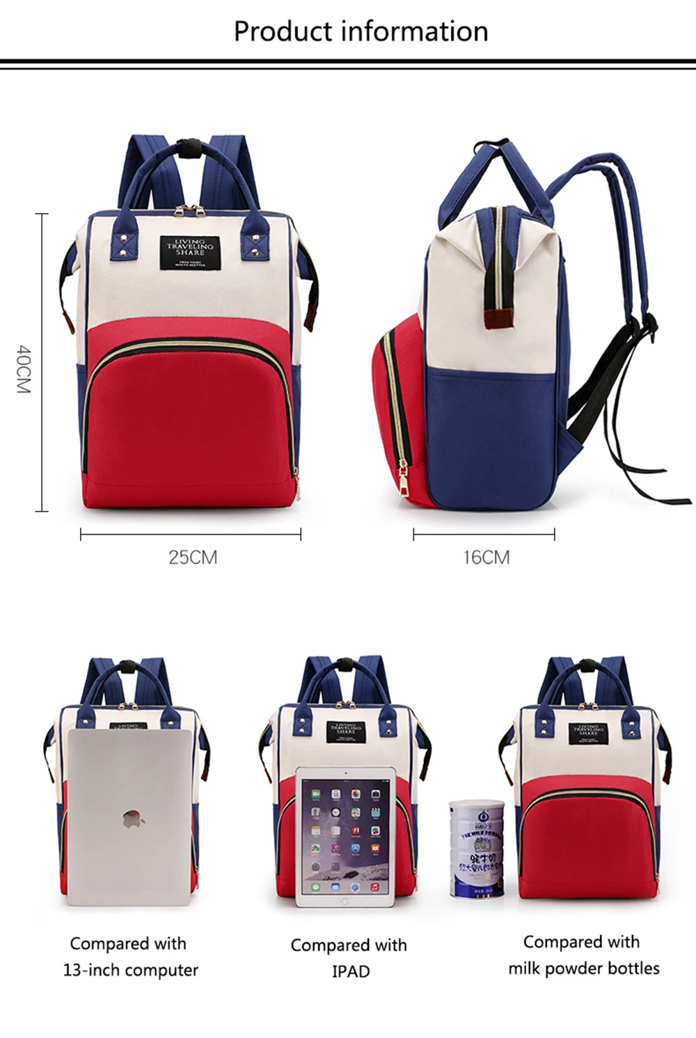 1. большая вместимость-большой основной отсек, отдельные карманы для хранения включают изолированные карманы и карман для влажной одежды, вы можете положить бутылку молока, бутылку воды, одежду, подгузники, полотенце и т. Д. В различные Отдельные карманы. 2. Многофункциональность-вы можете использовать эту сумку в качестве рюкзака и сумки. Он очень элегантный и подходит для многих случаев, таких как шоппинг, путешествия и т. д. Особенности: 1. Регулируемые лямки с подкладкой. 2. Водонепроницаемость, отличное качество. 3. Теплоизоляция Алюминиевой Фольги Для карманов для бутылок. 4. Застежка-молния сверху. Цвет ПРИМЕЧАНИЕ: 1. На разных мониторах или мобильных телефонах может быть разница в цвете. Цвет зависит от фактического полученного предмета. 2. Различные партии материалов, цвет также будет иметь немного цвет аберрации, пожалуйста, не покупайте, если возражаете. Спасибо за сотрудничество!