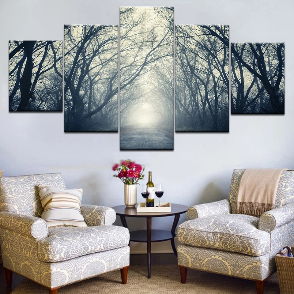 Modname = ckeditorХолщовые картины в Рамке Настенный Декор для дома HD печать 5 шт. тропические деревья картинки зеленый лес пейзаж плакаты художественное оформление