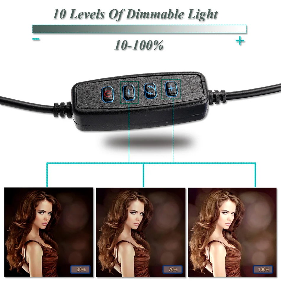 Двухцветный 3200K-5500K: Цветовая температура неограниченно регулируется. Этот кольцевой светильник для камеры может смягчить светильник и сделать вашу фотографию более естественной;